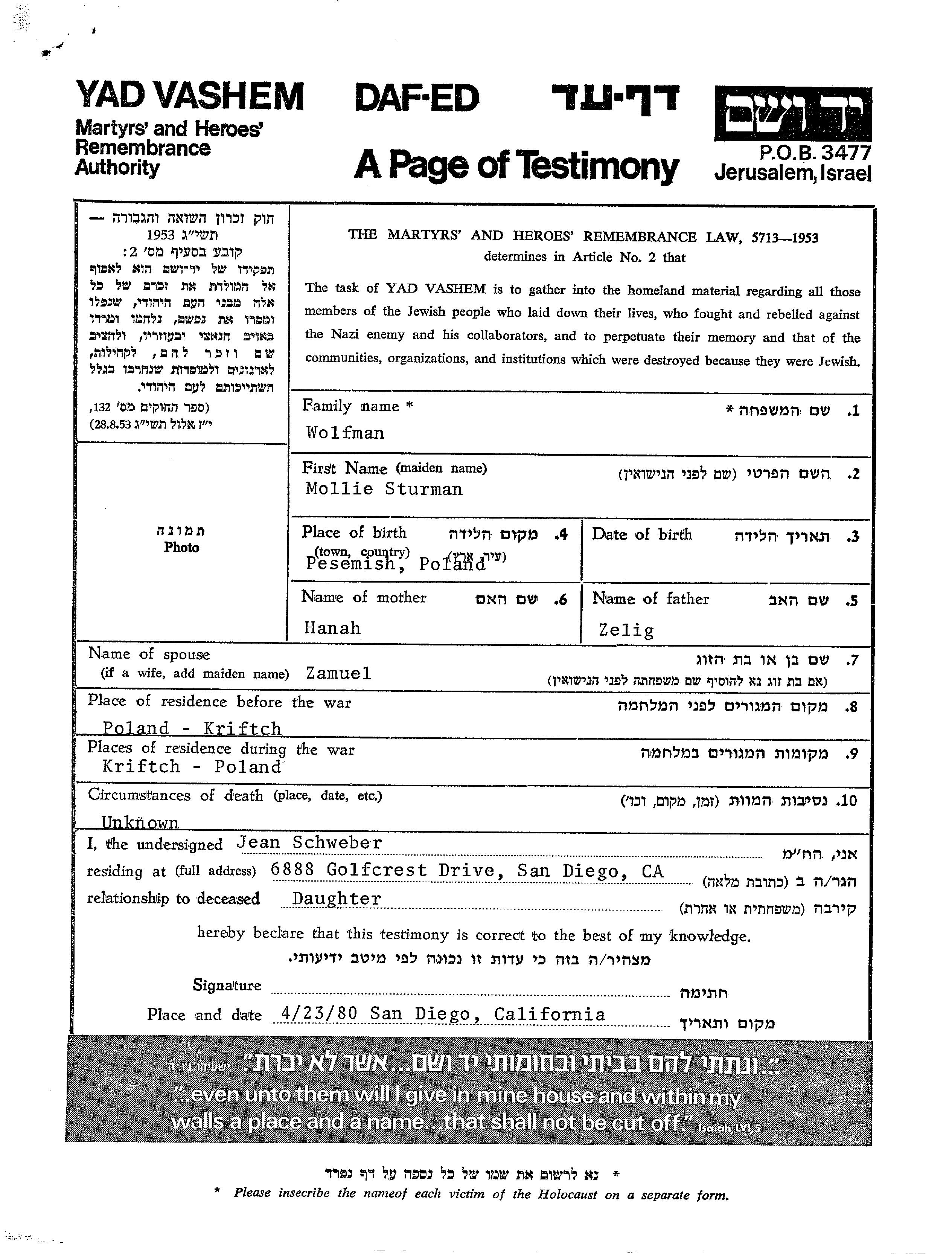 חיפוש שם מוסר דף העד. חיפוש לפי כל שם פרטי, כולל כינוי או שם חיבה