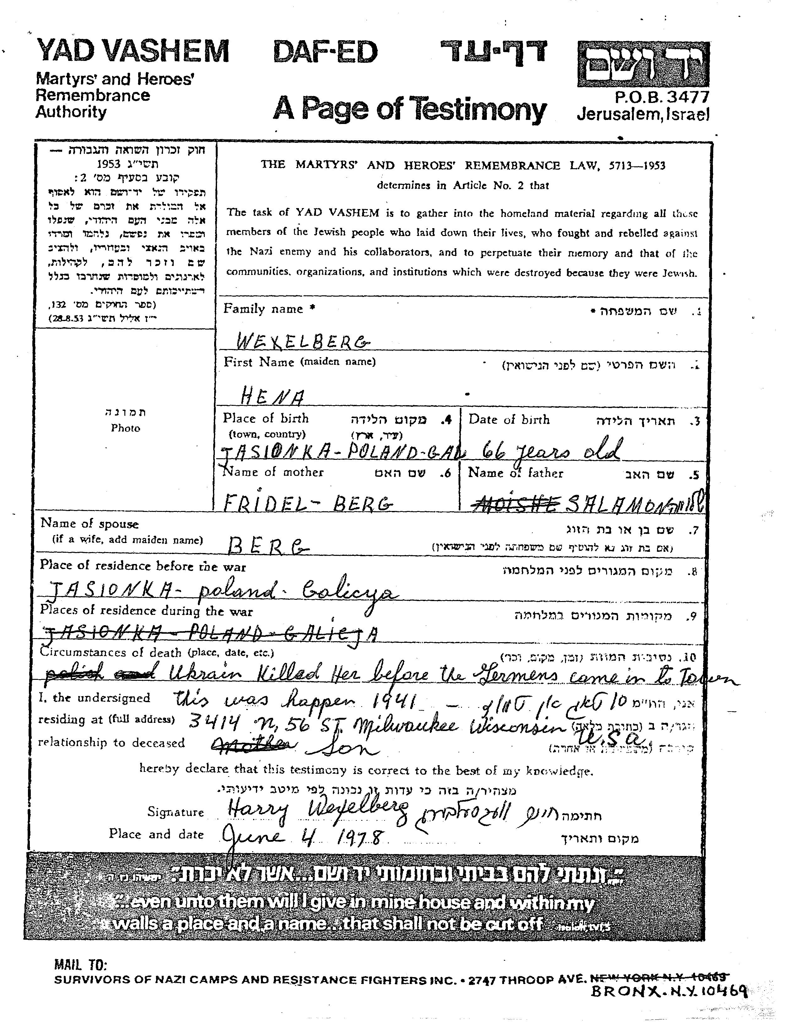 חיפוש שם מוסר דף העד. חיפוש לפי כל שם פרטי, כולל כינוי או שם חיבה