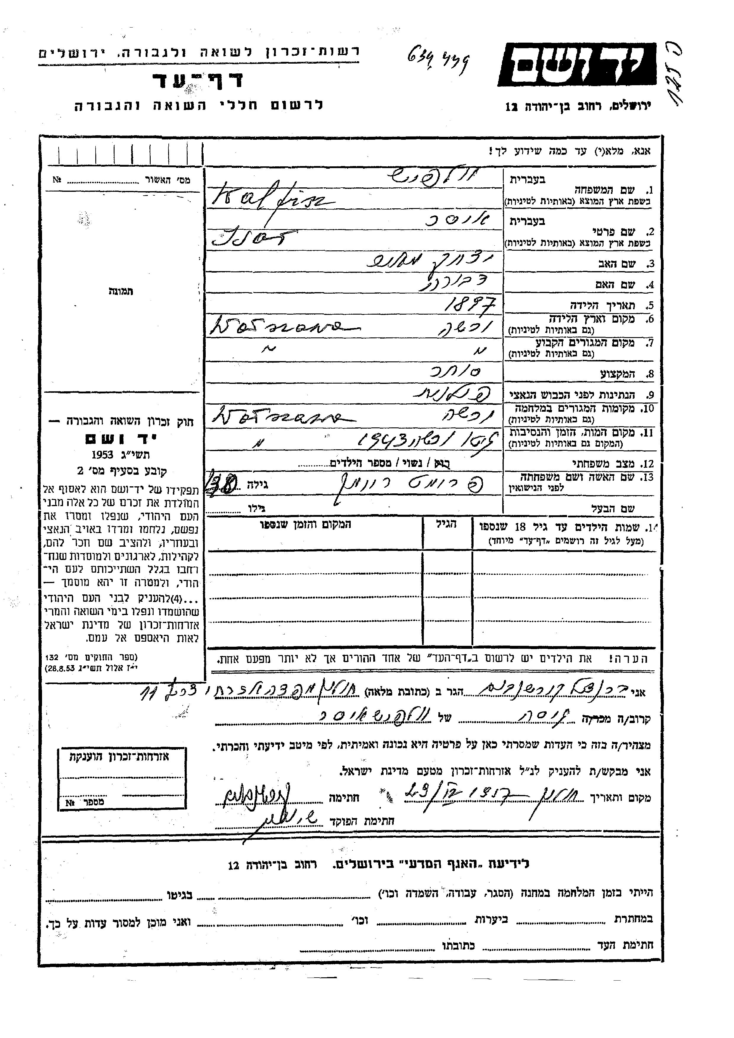 יד ושם - המפעל להנצחת השמות בדפי עד