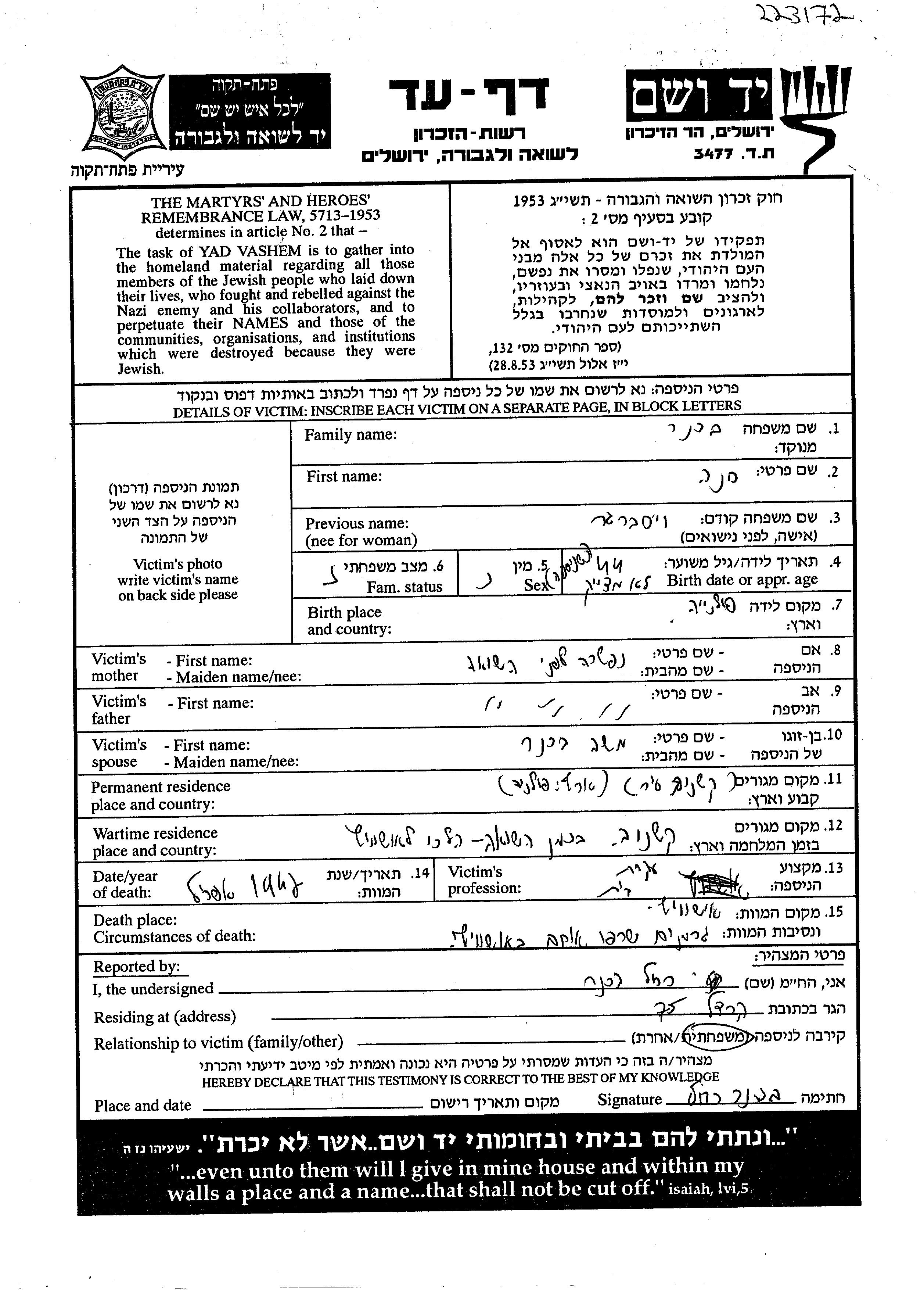 יד ושם - המפעל להנצחת השמות בדפי עד