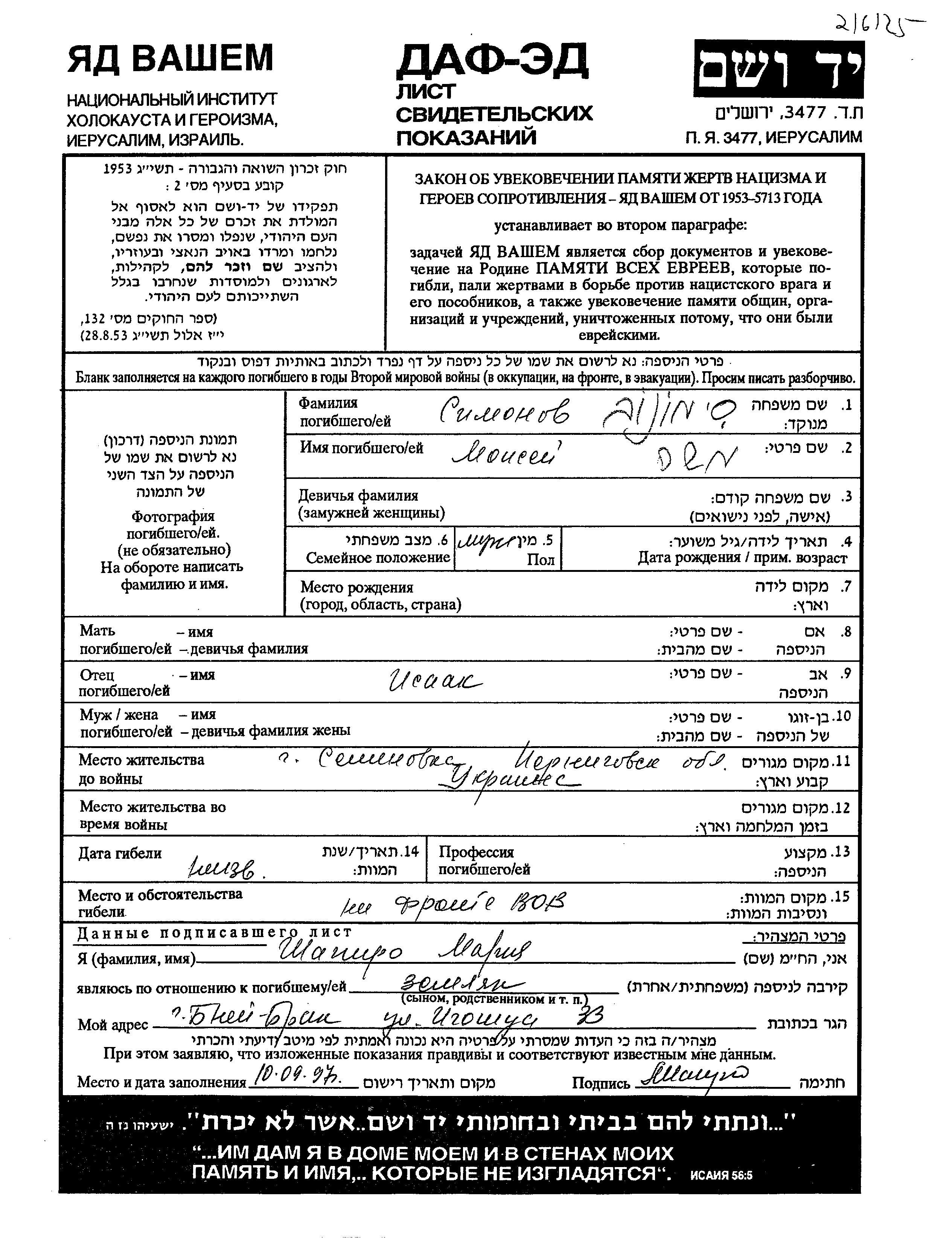 חיפוש שם מוסר דף העד. חיפוש לפי כל שם פרטי, כולל כינוי או שם חיבה