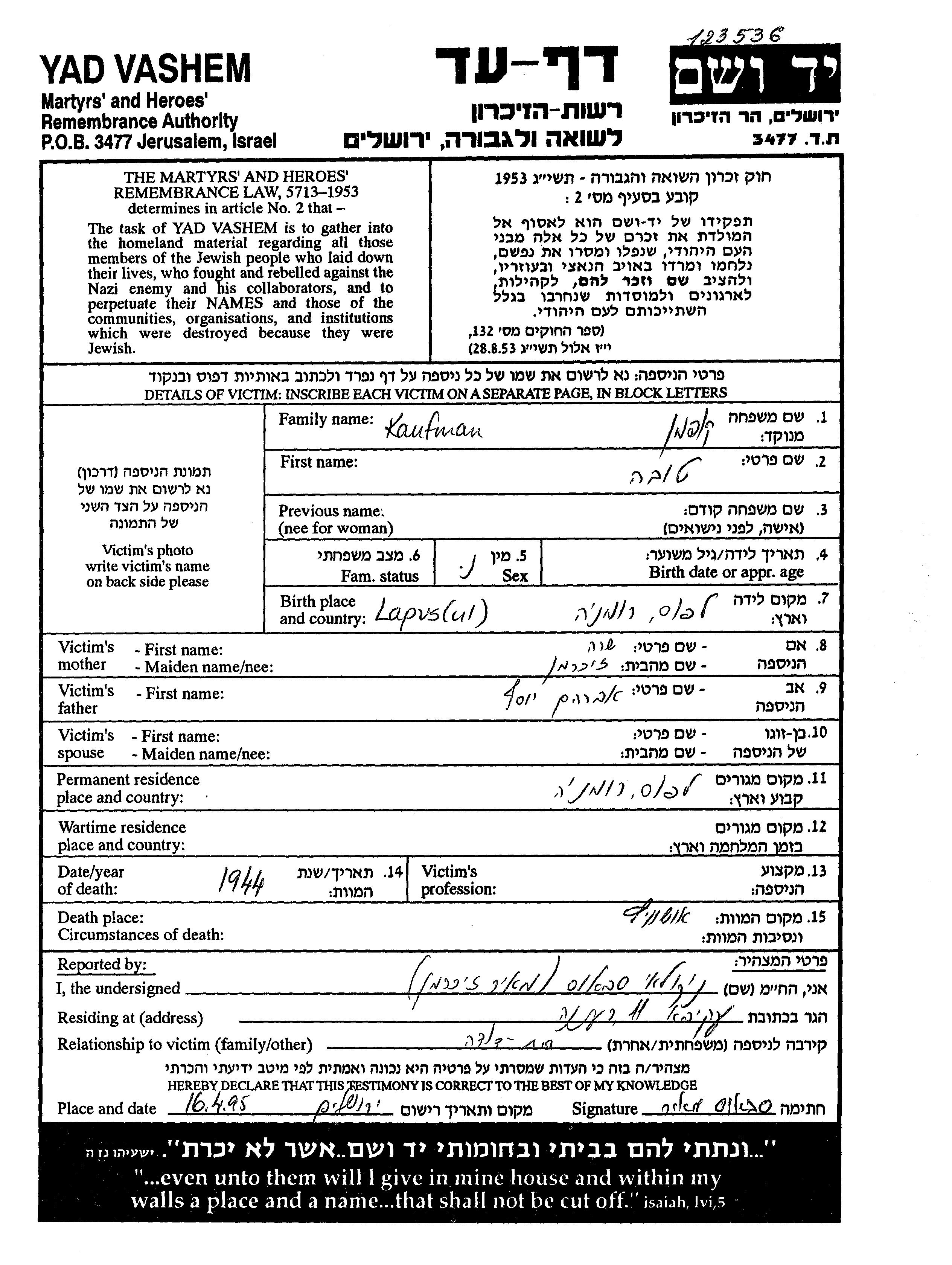 יד ושם - המפעל להנצחת השמות בדפי עד
