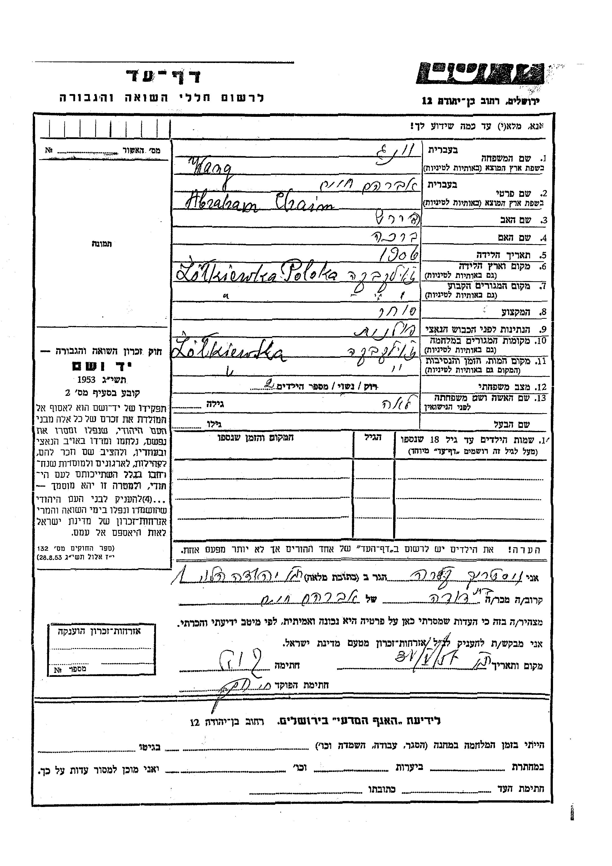 יד ושם - המפעל להנצחת השמות בדפי עד