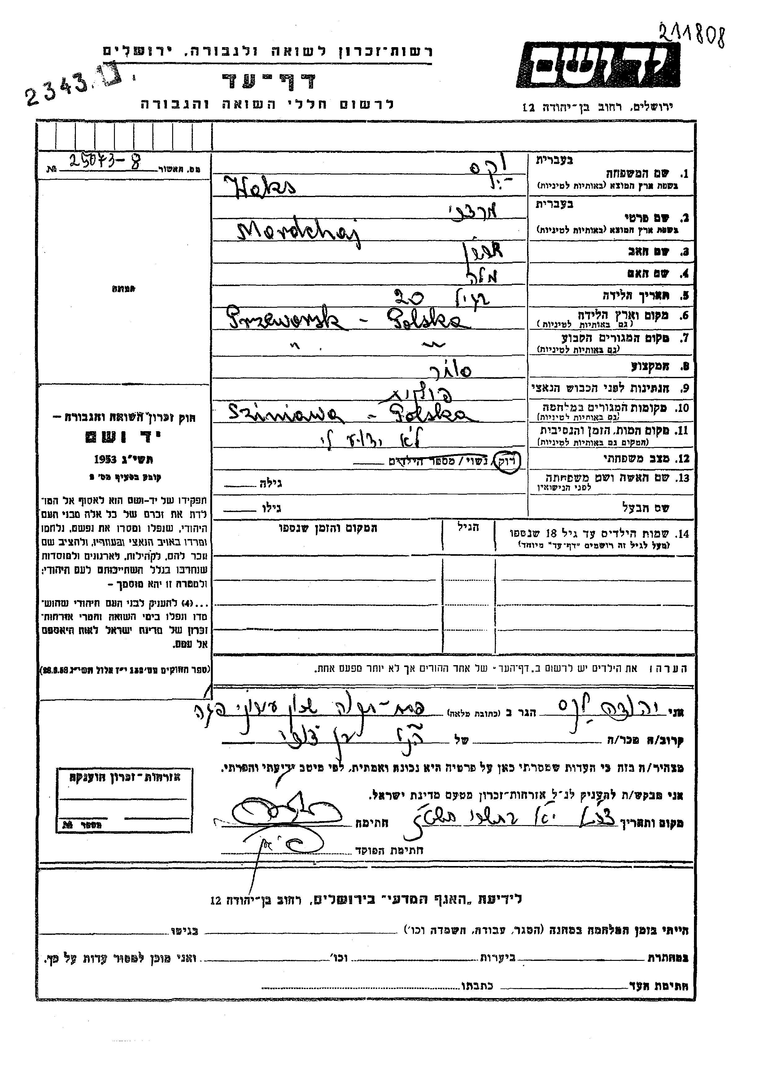 יד ושם - המפעל להנצחת השמות בדפי עד