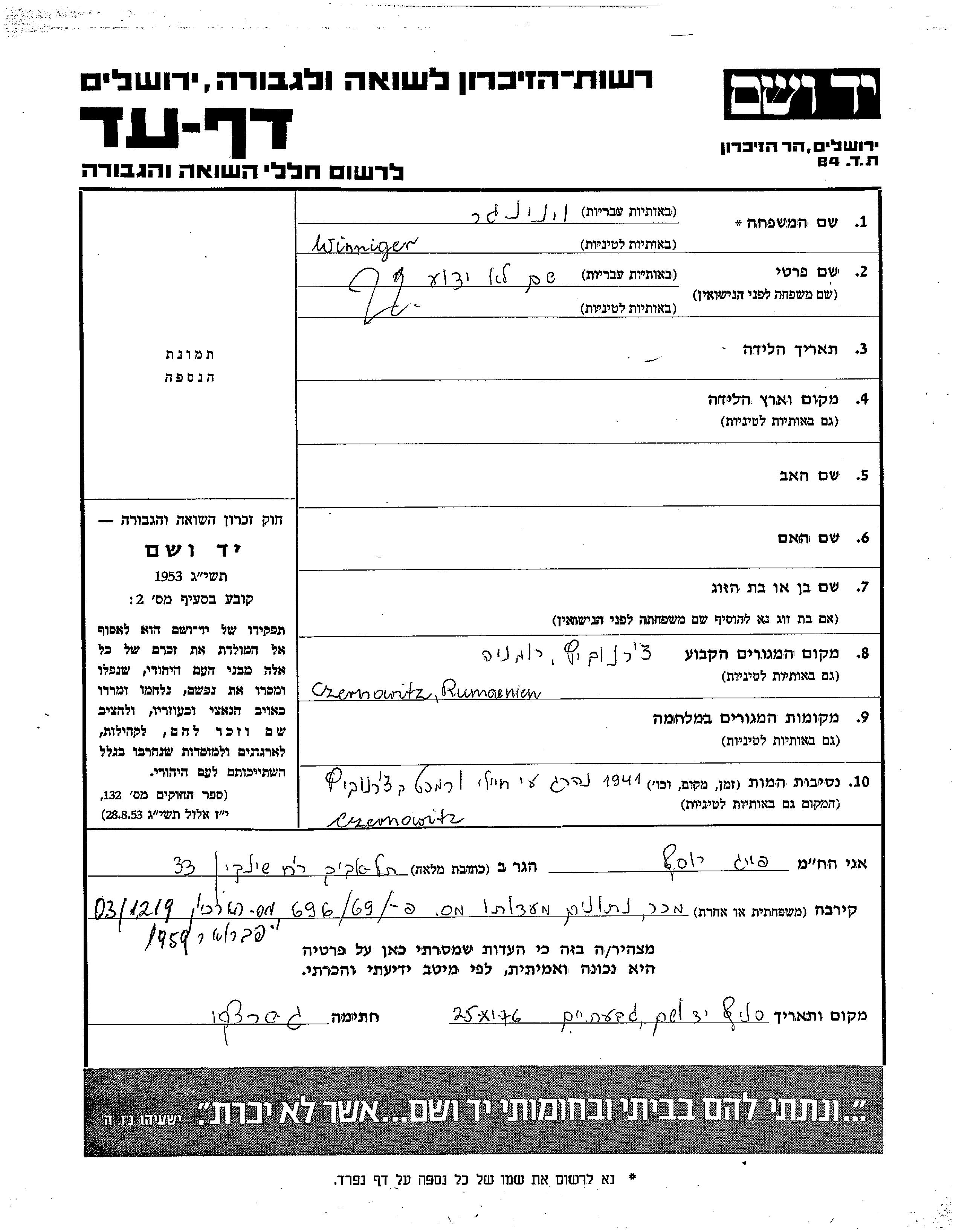 Winniger שם פרטי לא ידוע Cernauti, רומניה דף-עד