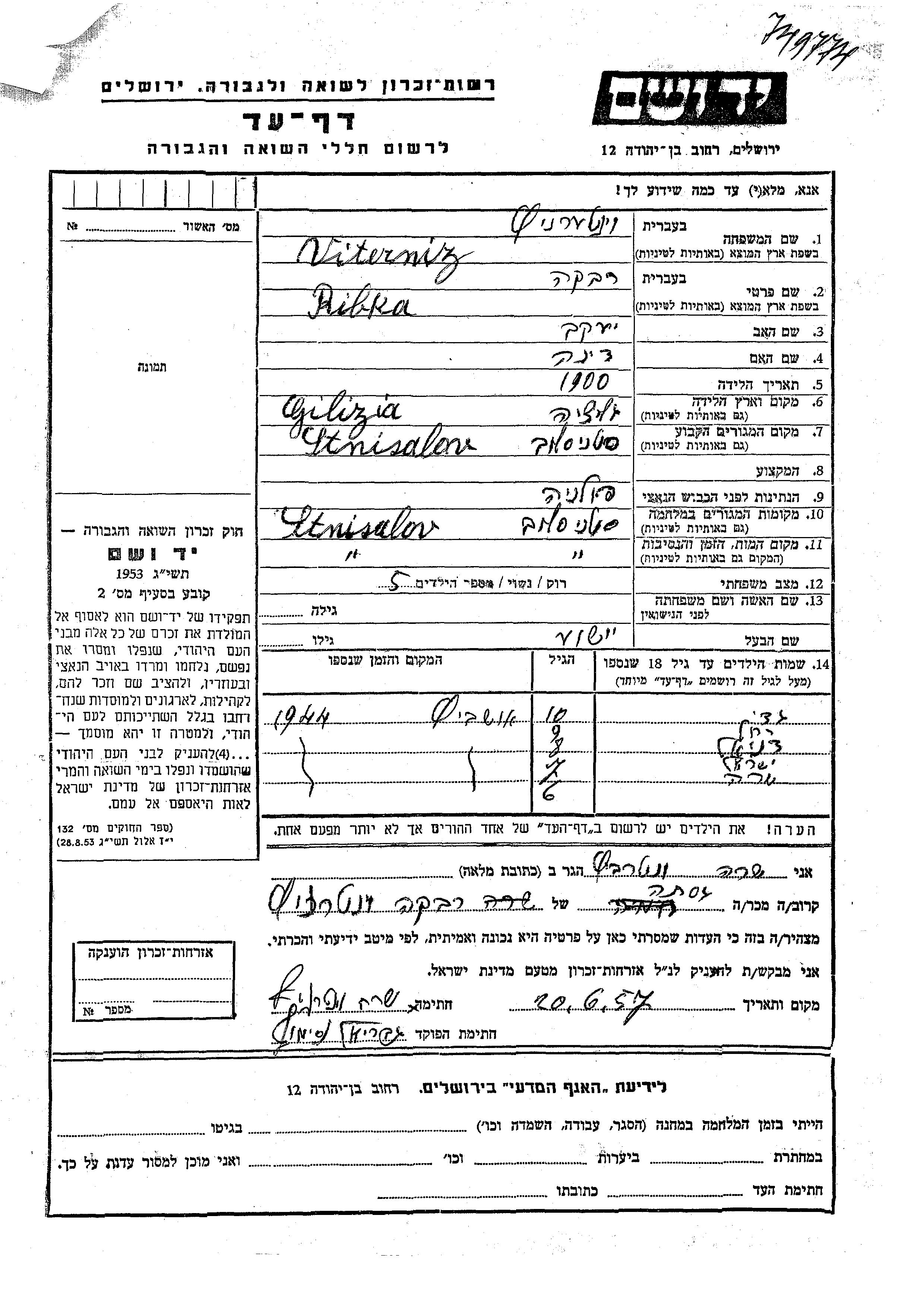 יד ושם - המפעל להנצחת השמות בדפי עד