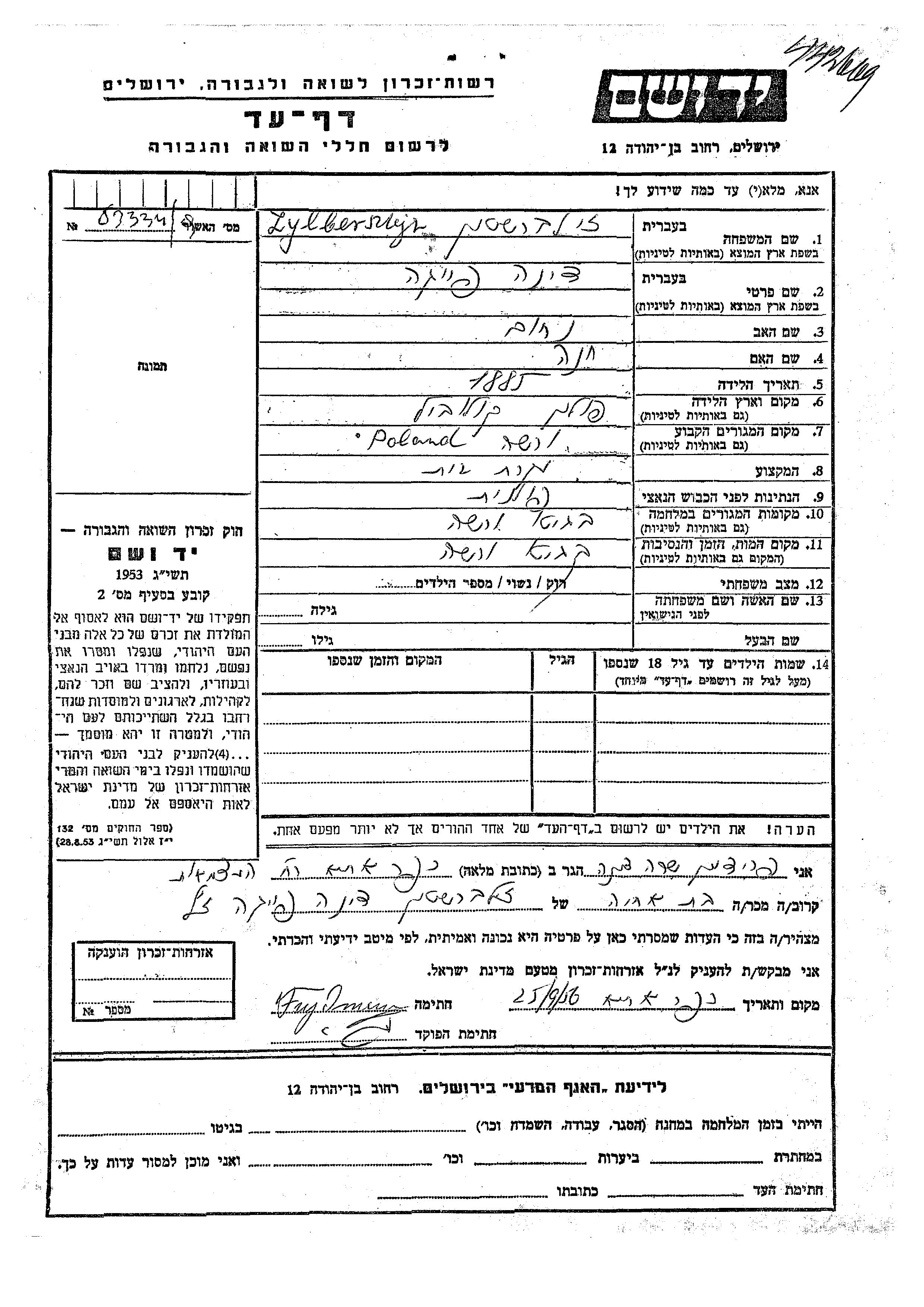 יד ושם - המפעל להנצחת השמות בדפי עד