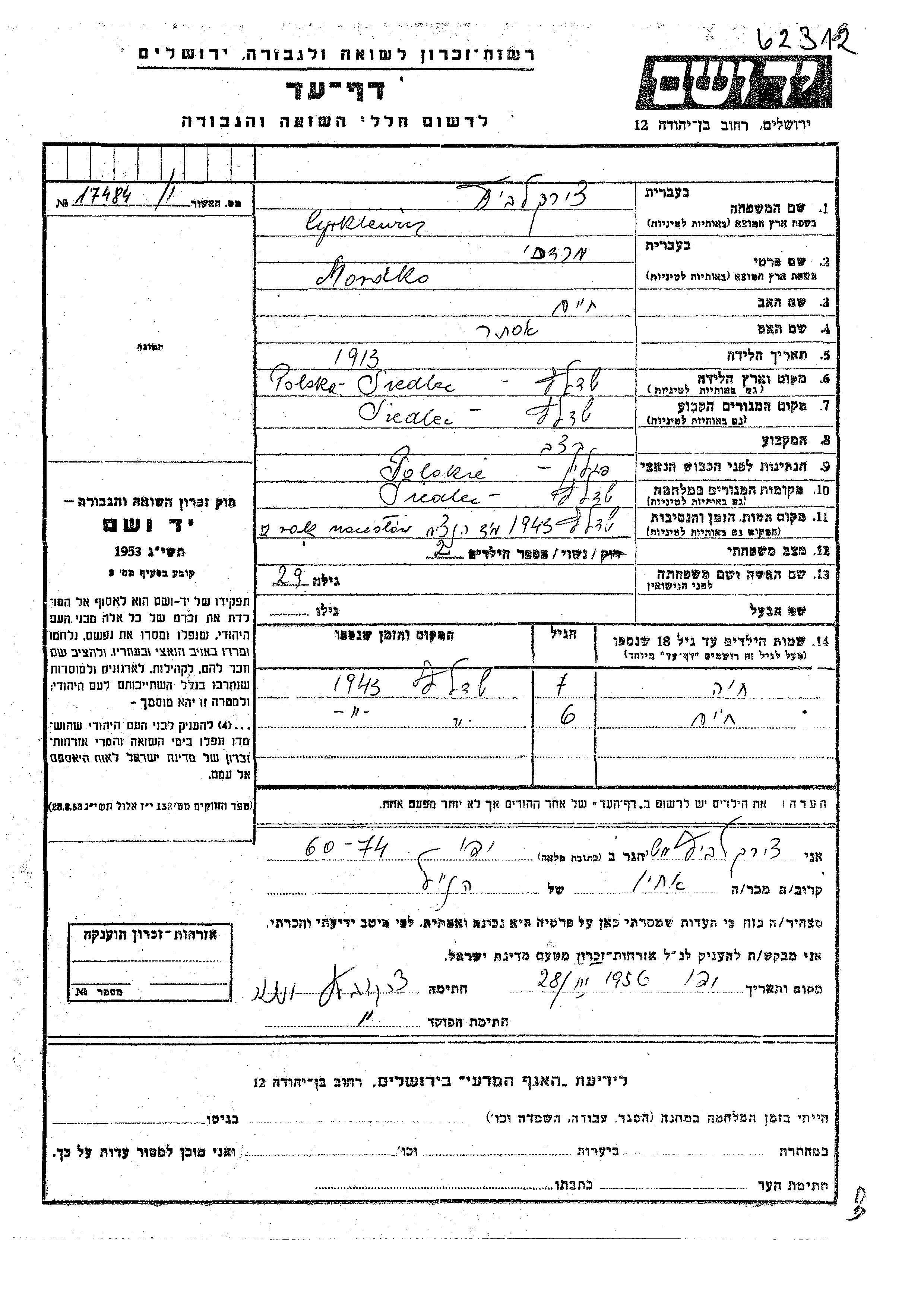 יד ושם - המפעל להנצחת השמות בדפי עד
