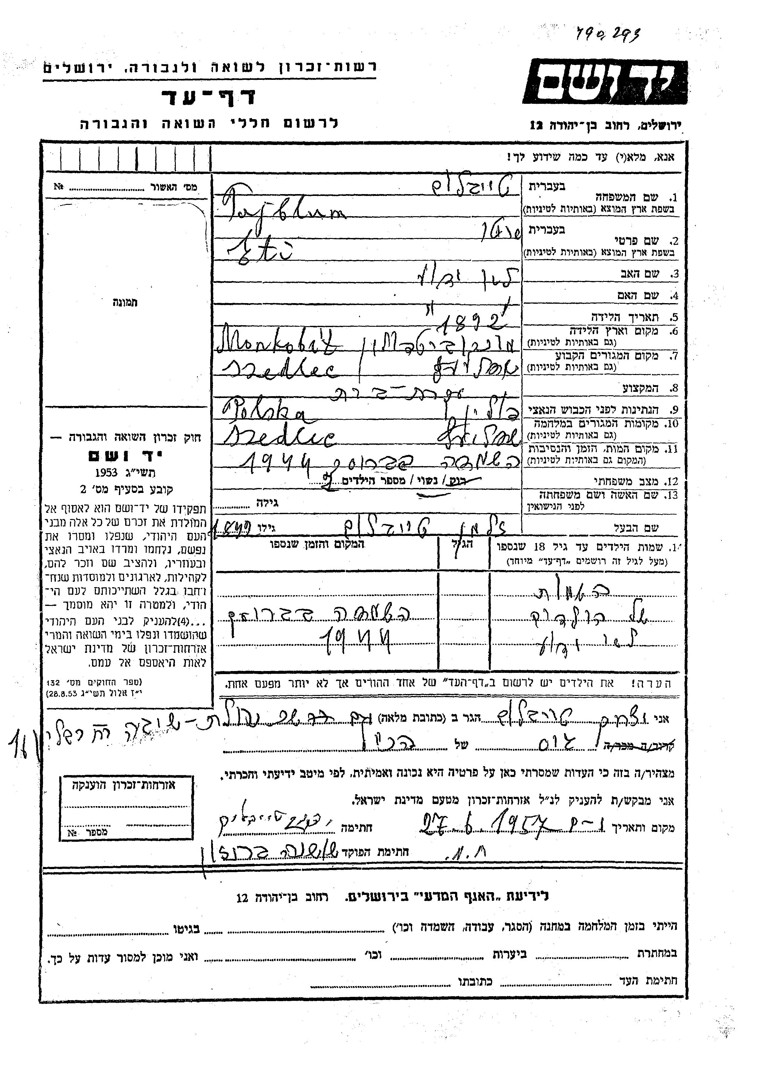 יד ושם - המפעל להנצחת השמות בדפי עד