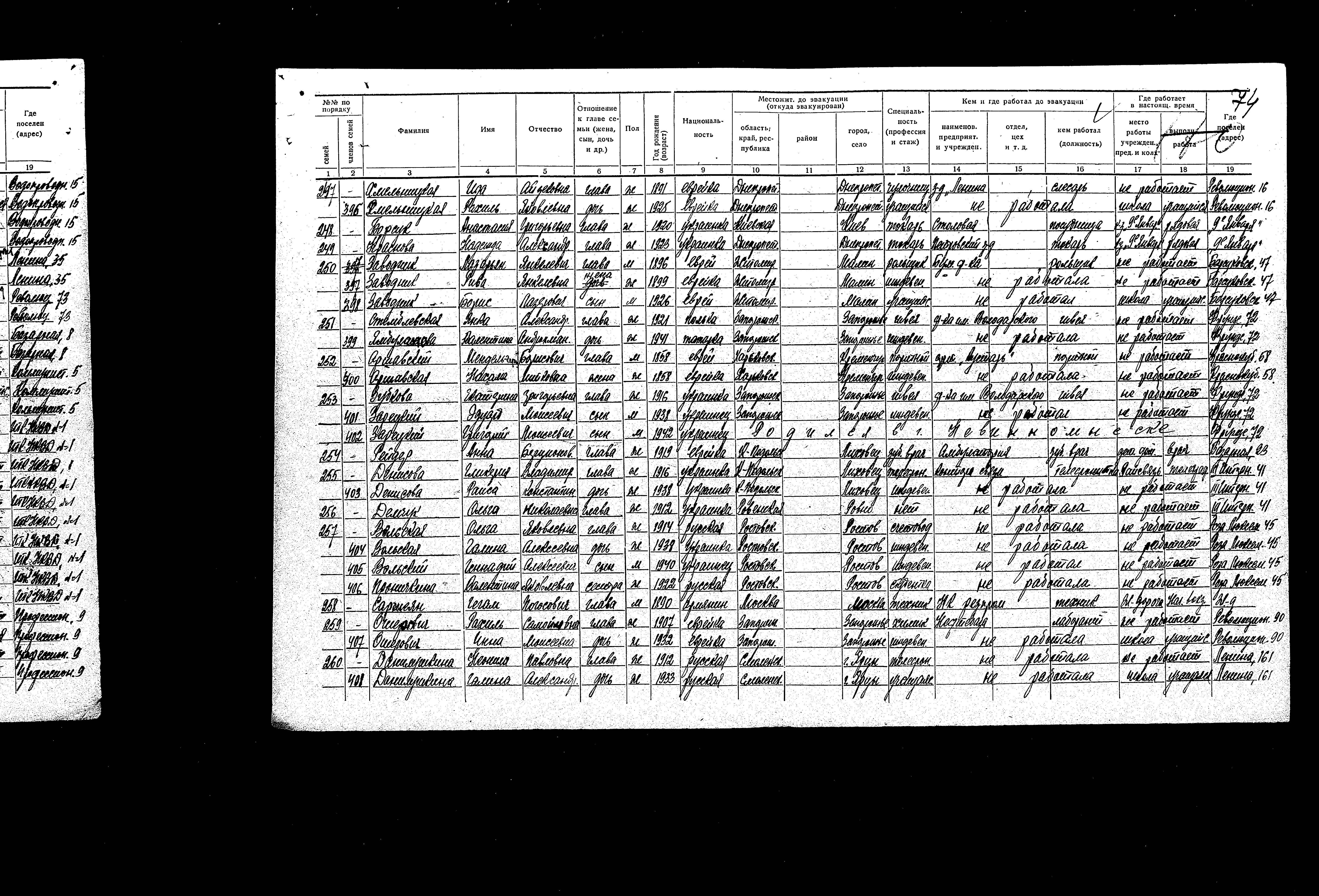 רשימת תושבים שפונו ל- Nevinnomyssk, שהוכנה בשנת 1942