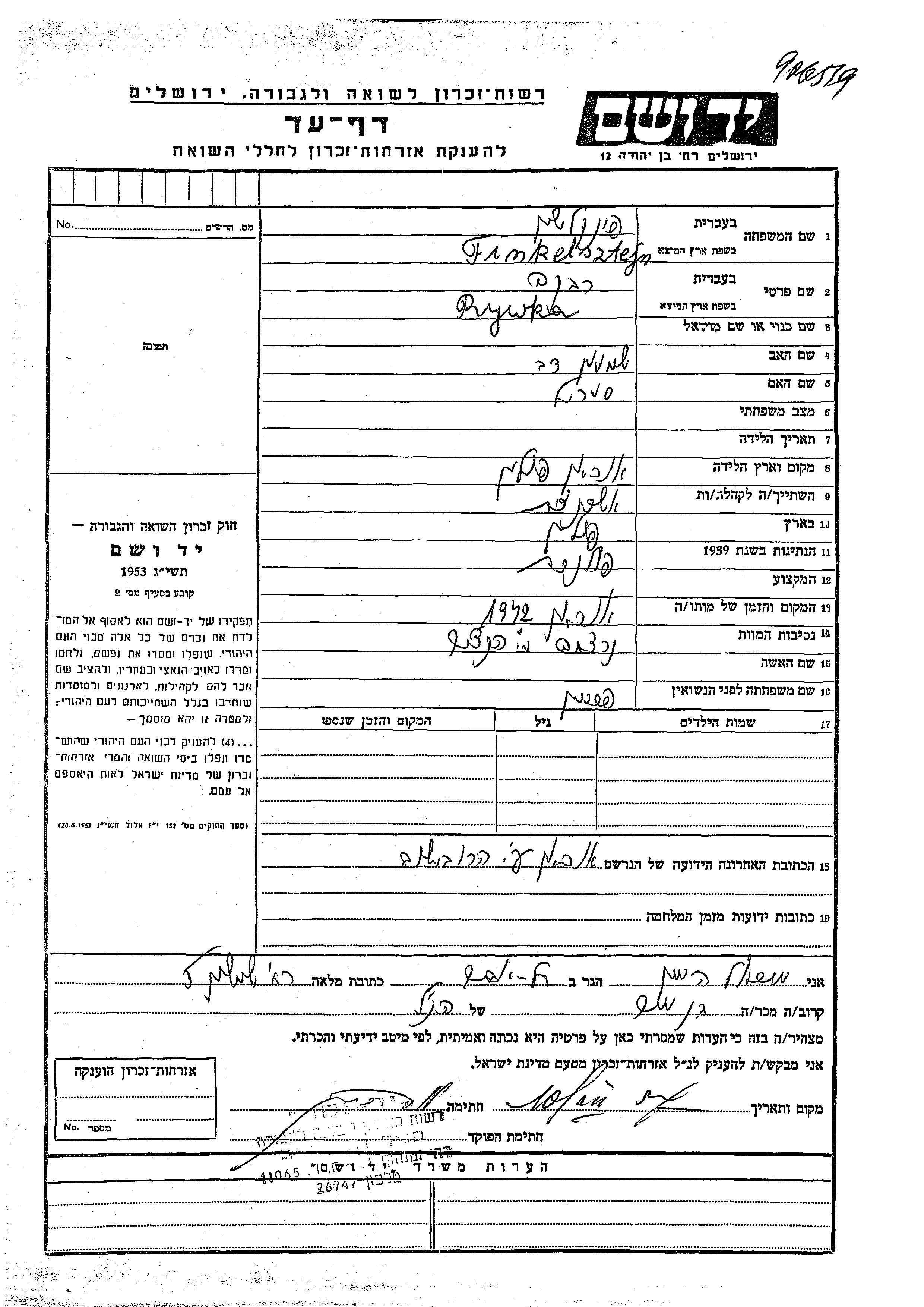 יד ושם - המפעל להנצחת השמות בדפי עד