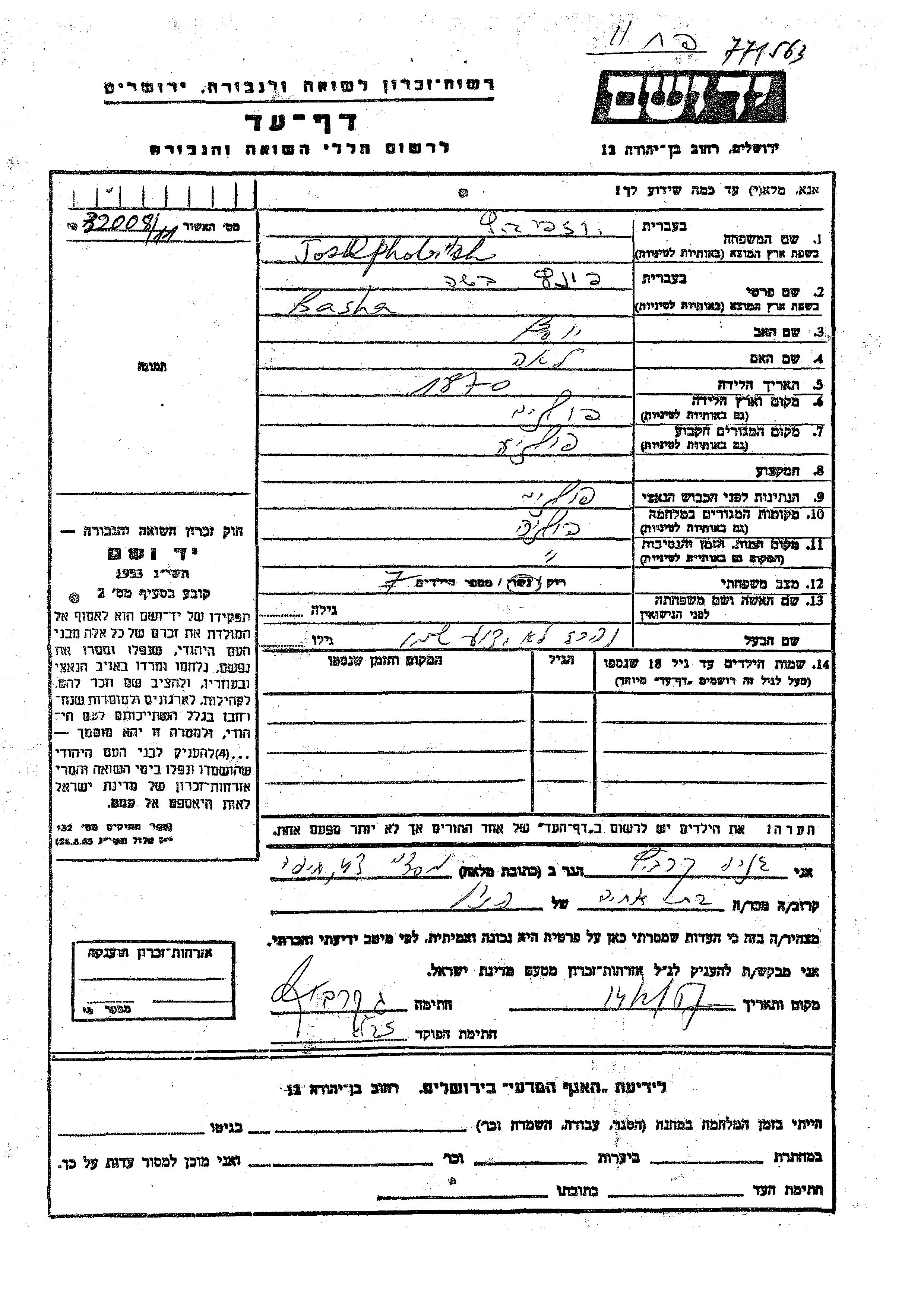 יד ושם - המפעל להנצחת השמות בדפי עד