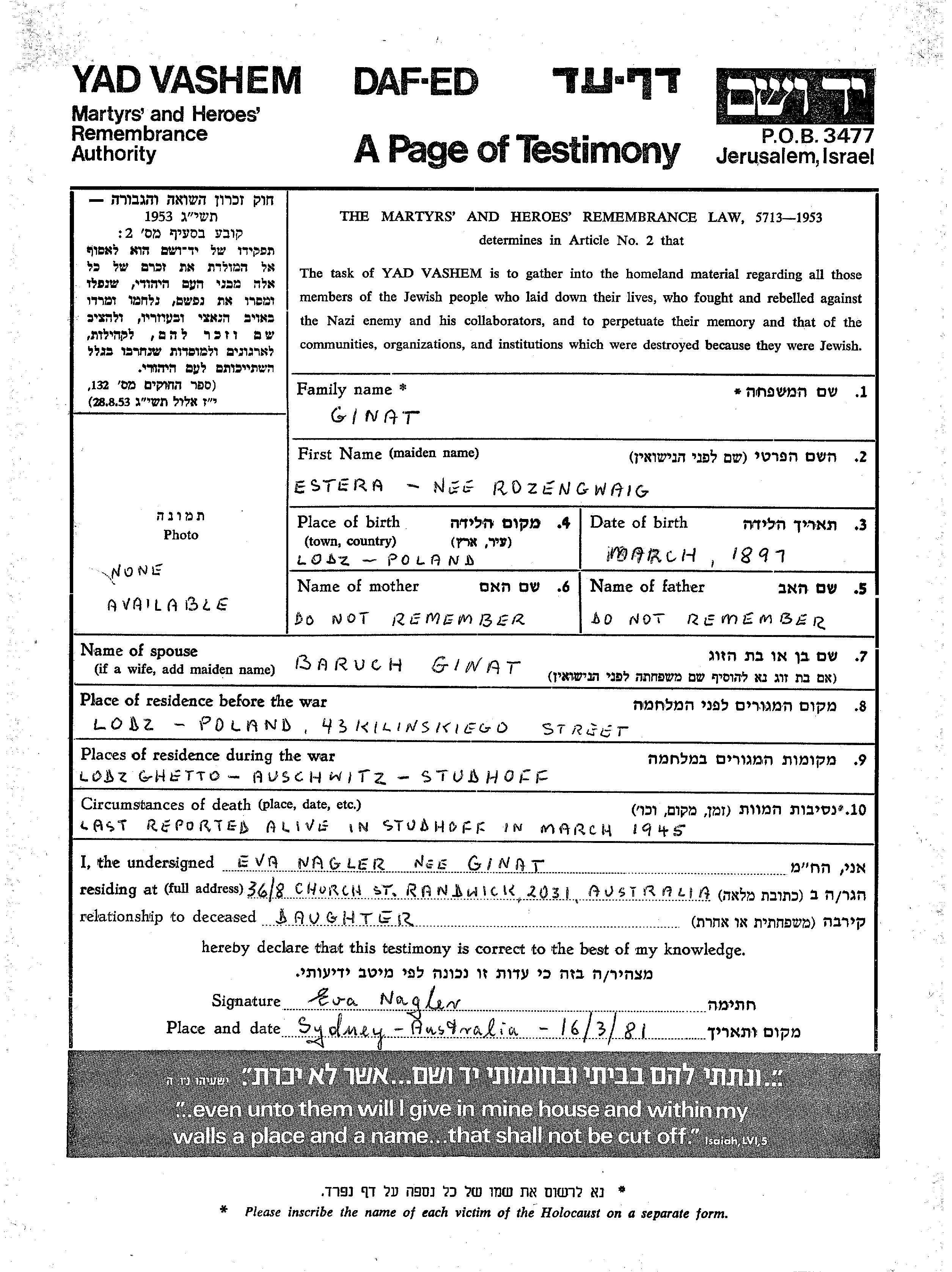 חיפוש שם מוסר דף העד. חיפוש לפי כל שם פרטי, כולל כינוי או שם חיבה