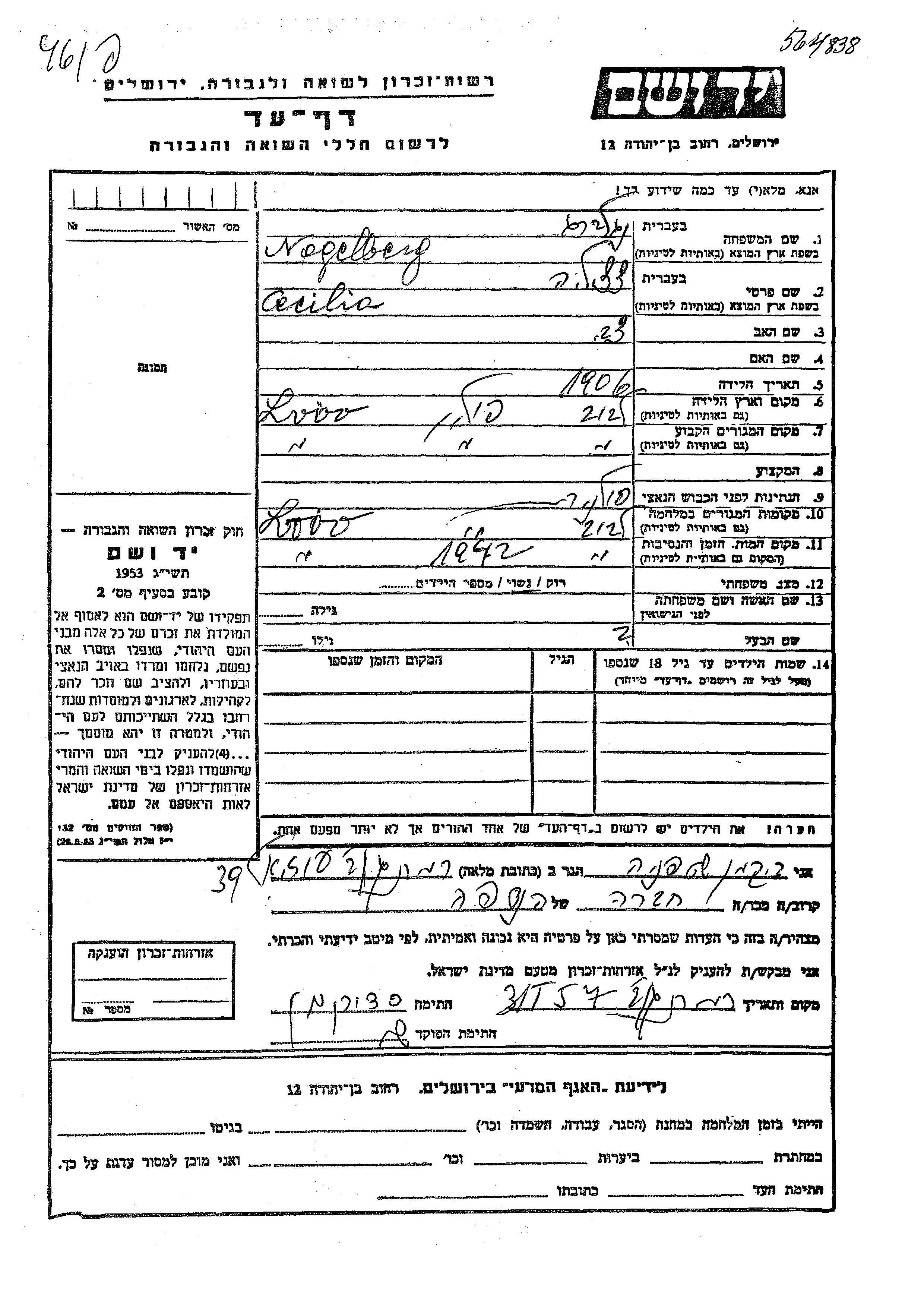נגלברג Cecilia 1906 Lvov, פולין דף-עד