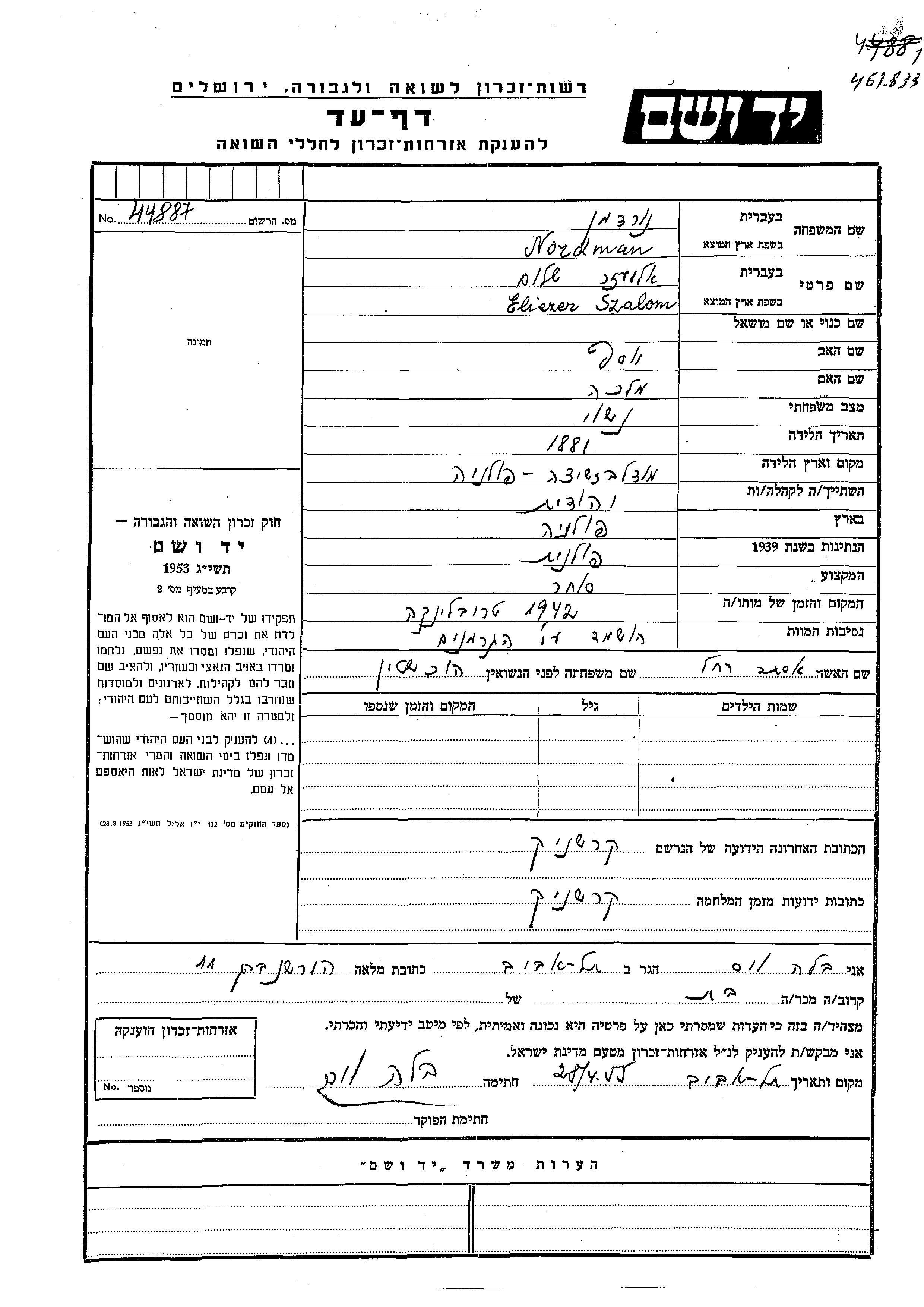 יד ושם - המפעל להנצחת השמות בדפי עד
