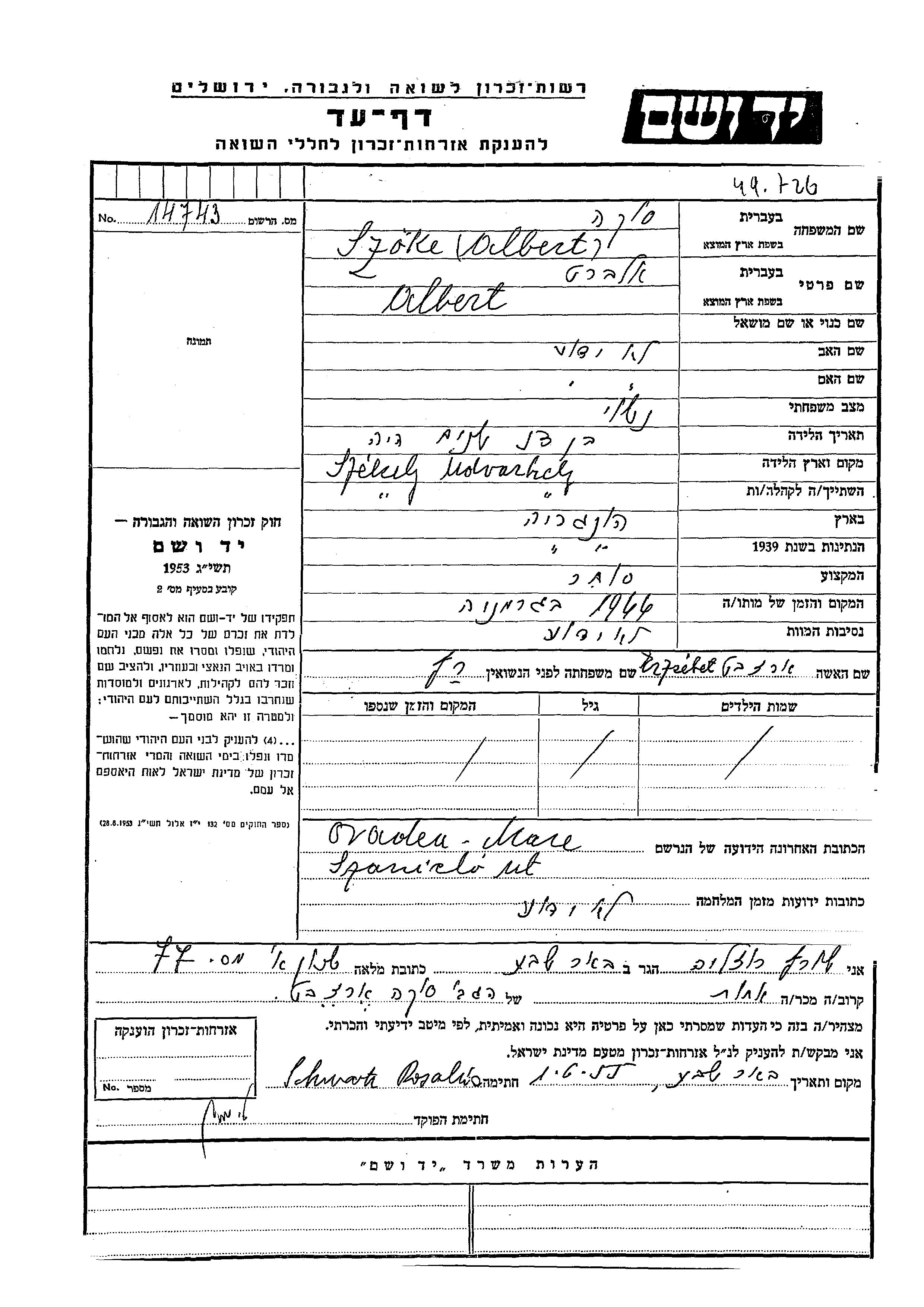 יד ושם - המפעל להנצחת השמות בדפי עד