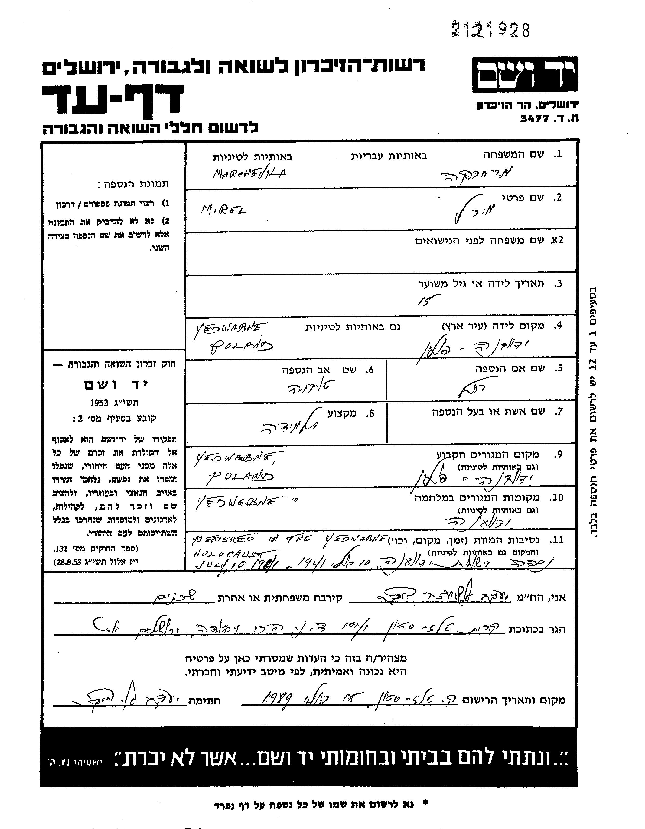 יד ושם - המפעל להנצחת השמות בדפי עד