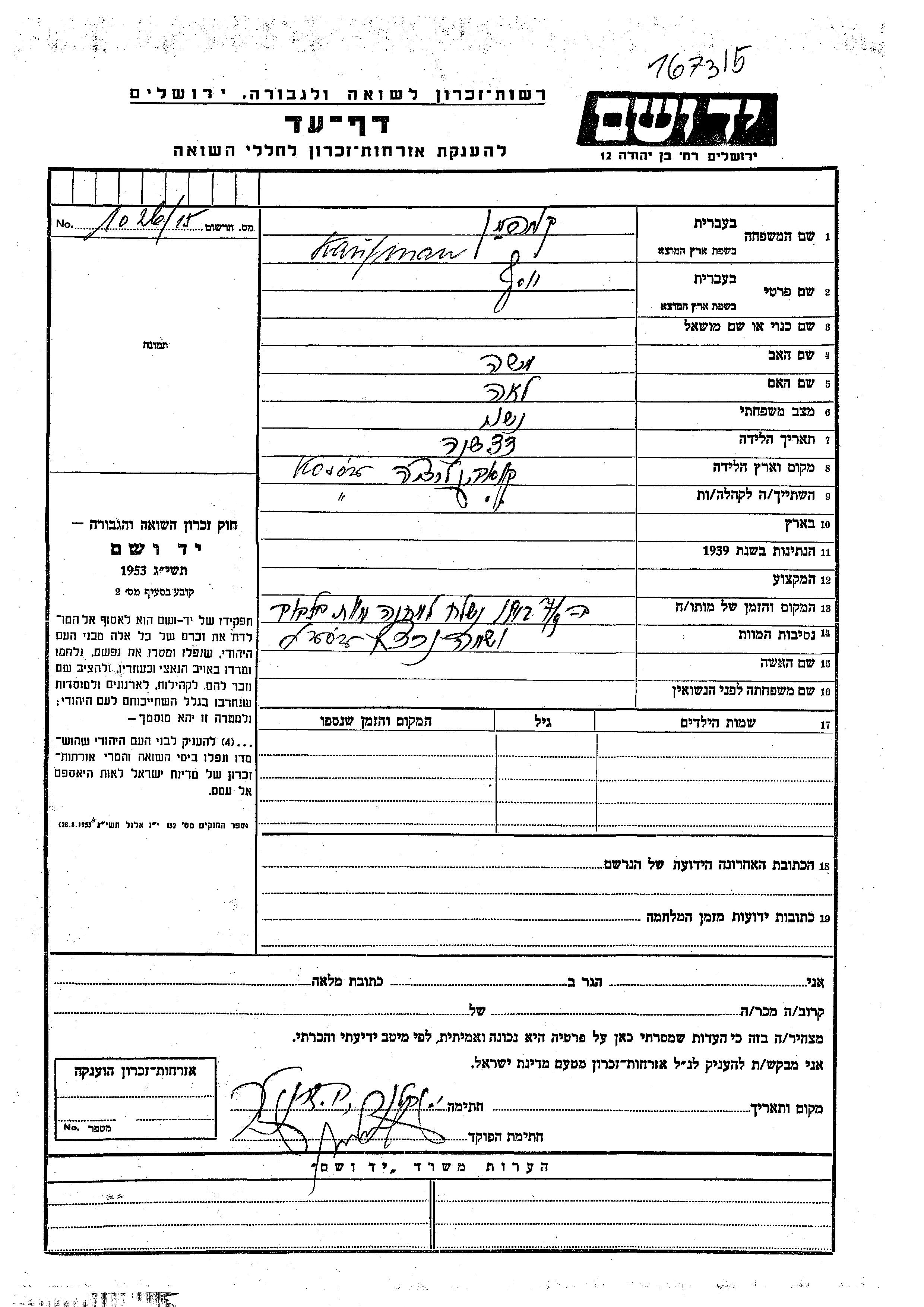יד ושם - המפעל להנצחת השמות בדפי עד