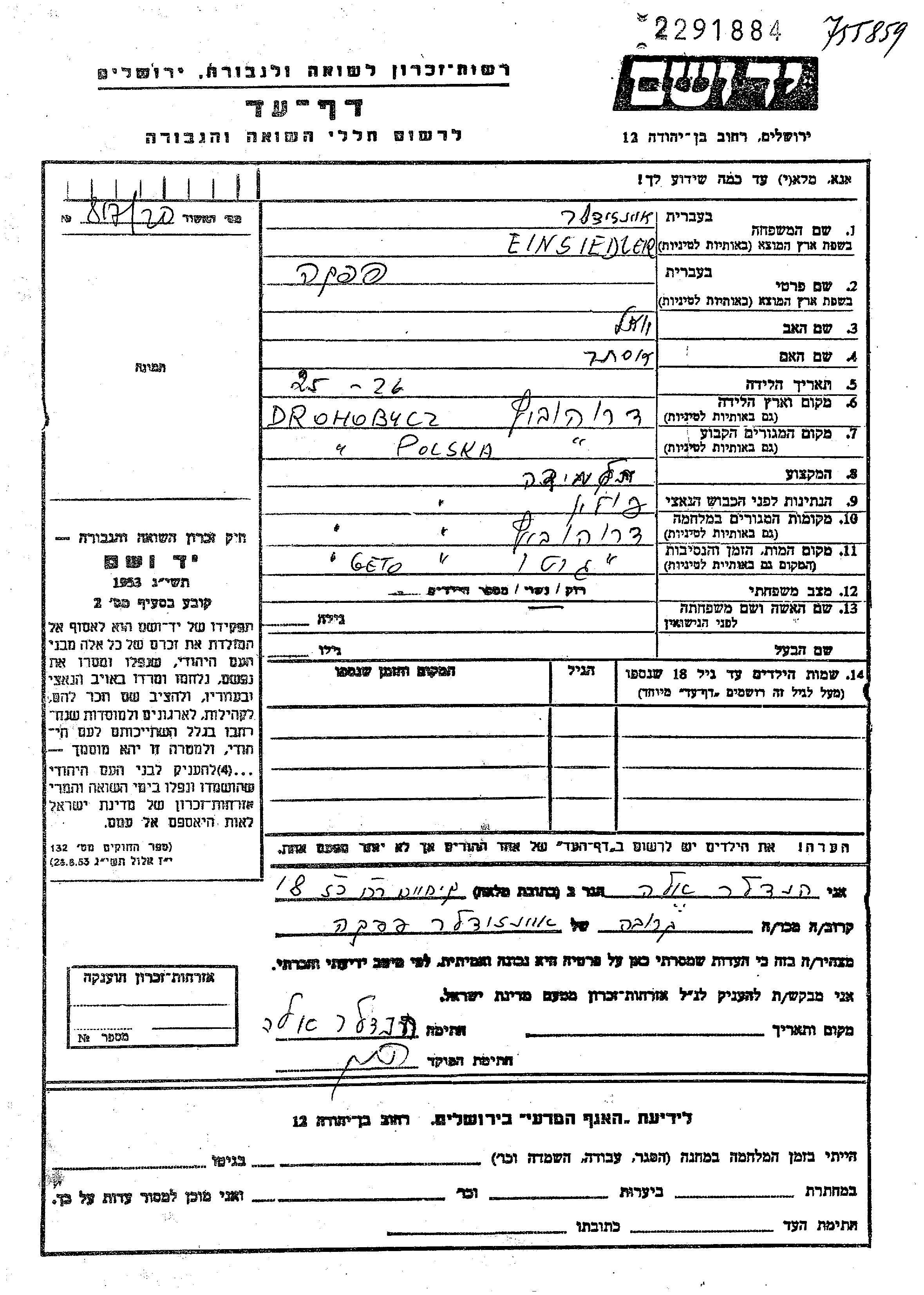 יד ושם - המפעל להנצחת השמות בדפי עד