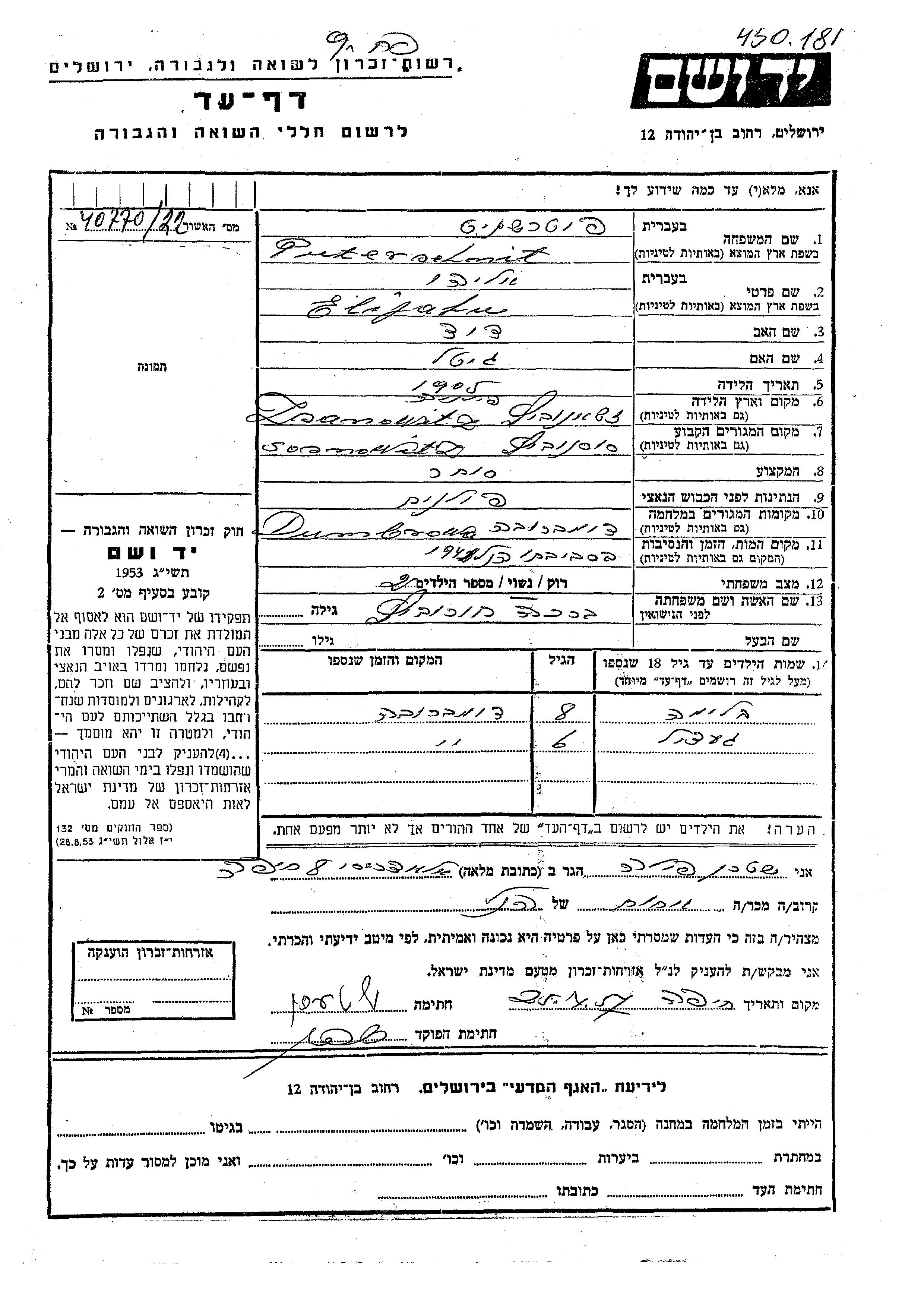 יד ושם - המפעל להנצחת השמות בדפי עד