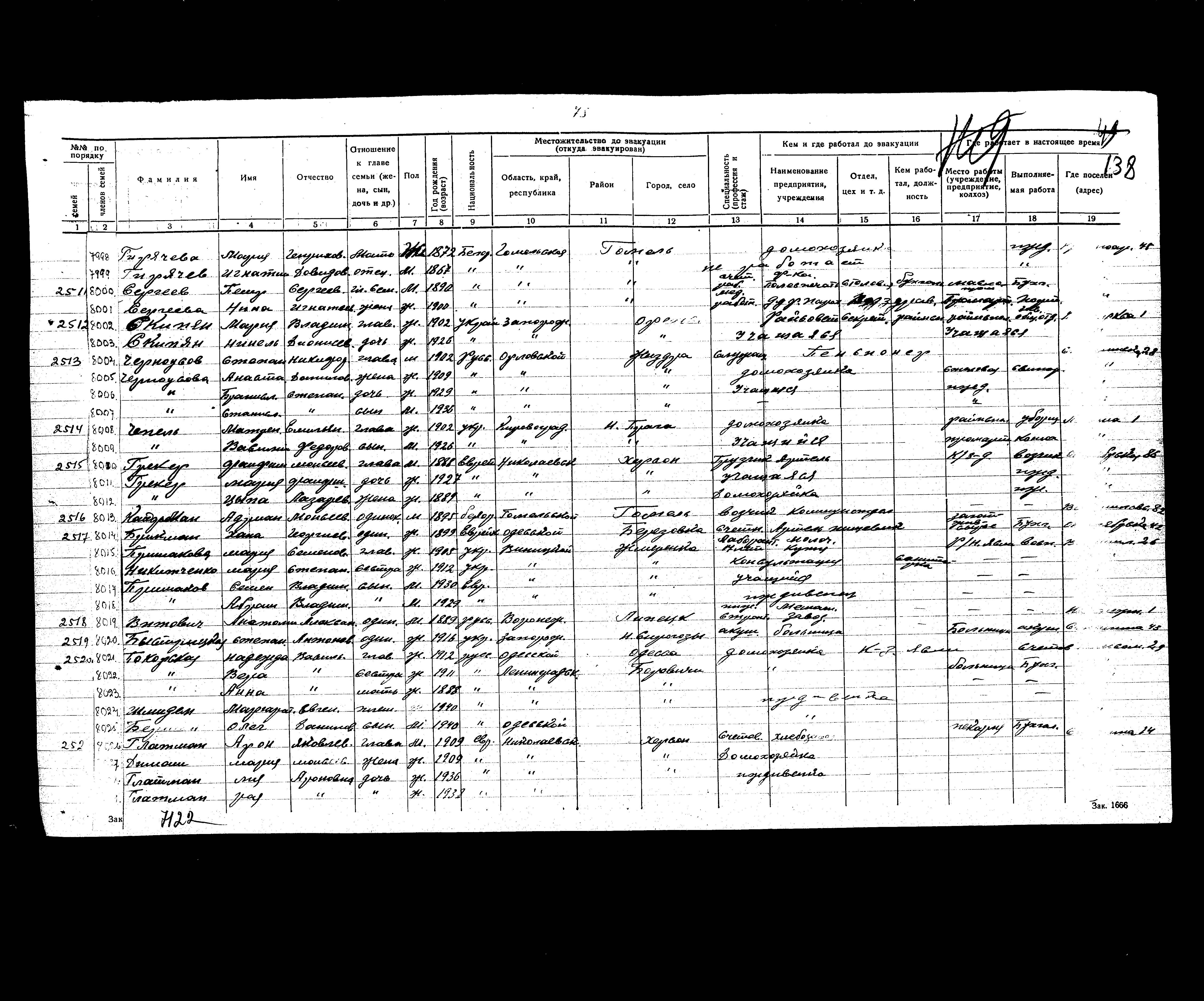 רשימת תושבים שפונו לנפת Medveditskoye, שהוכנה בשנת 1942