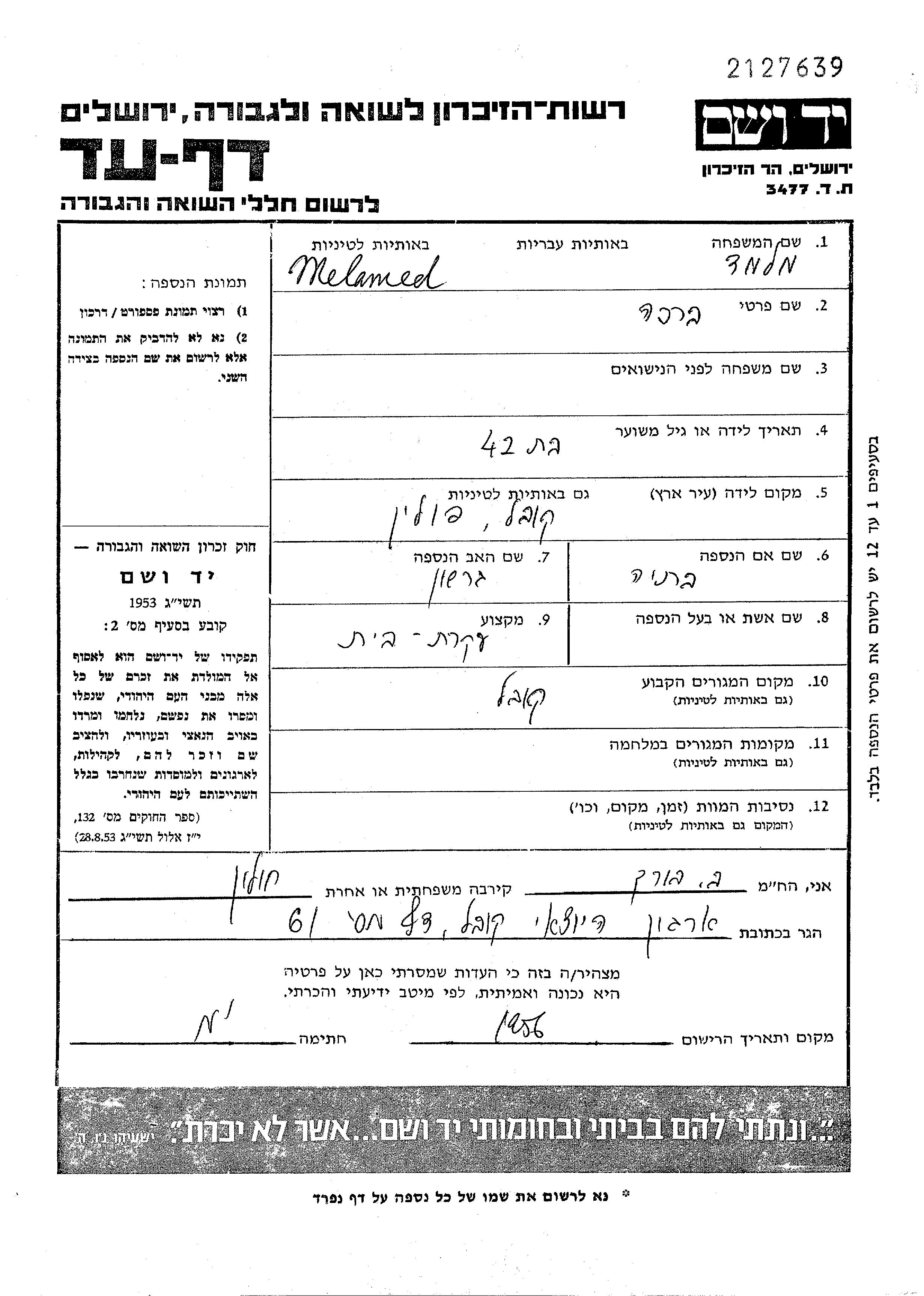 שם משפחה שם פרטי תאריך לידה מקום מקור המידע