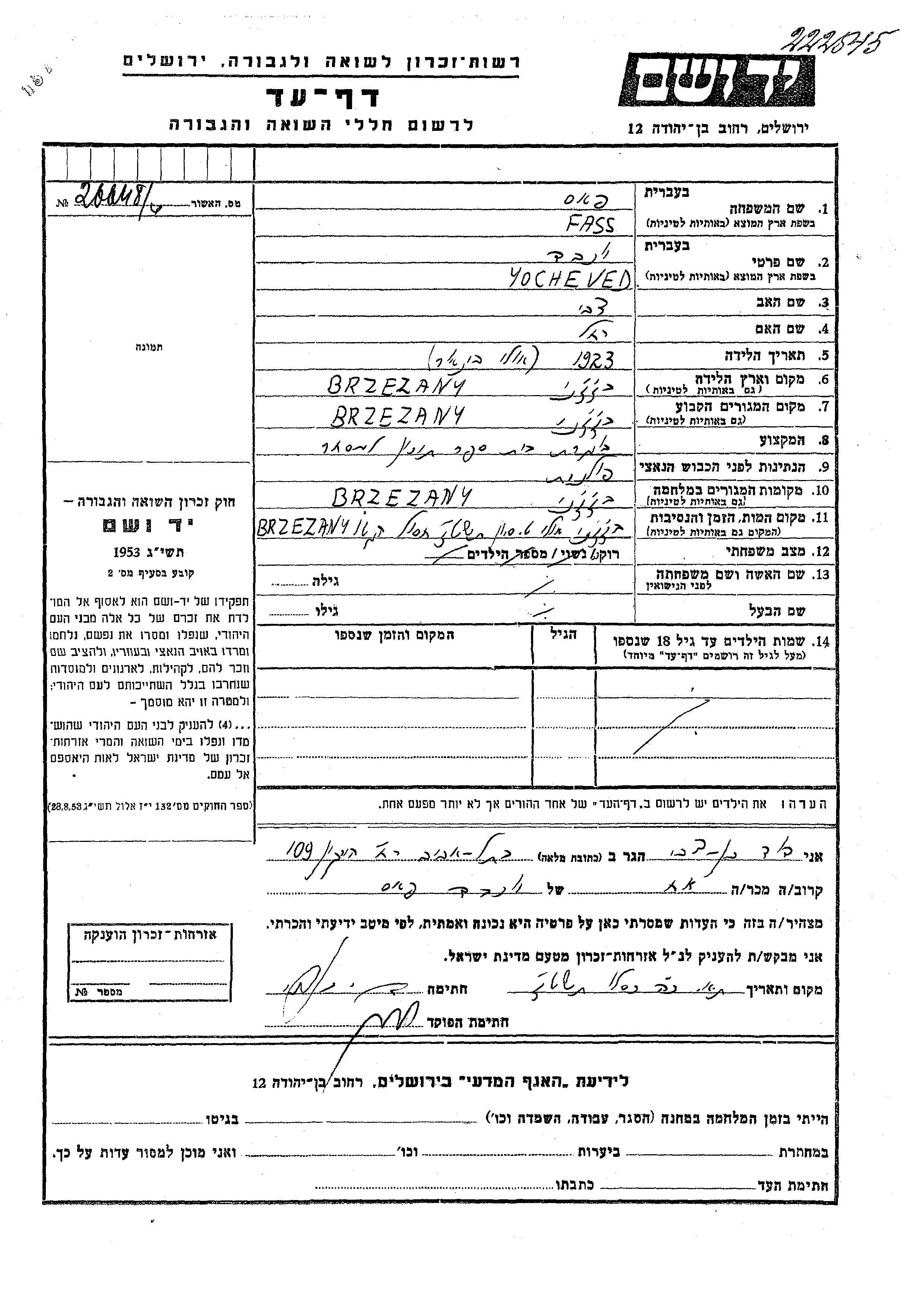 פאס יוכבד Brzeżany, פולין רשימת יהודים נרצחים מתוך ספרי יזכור