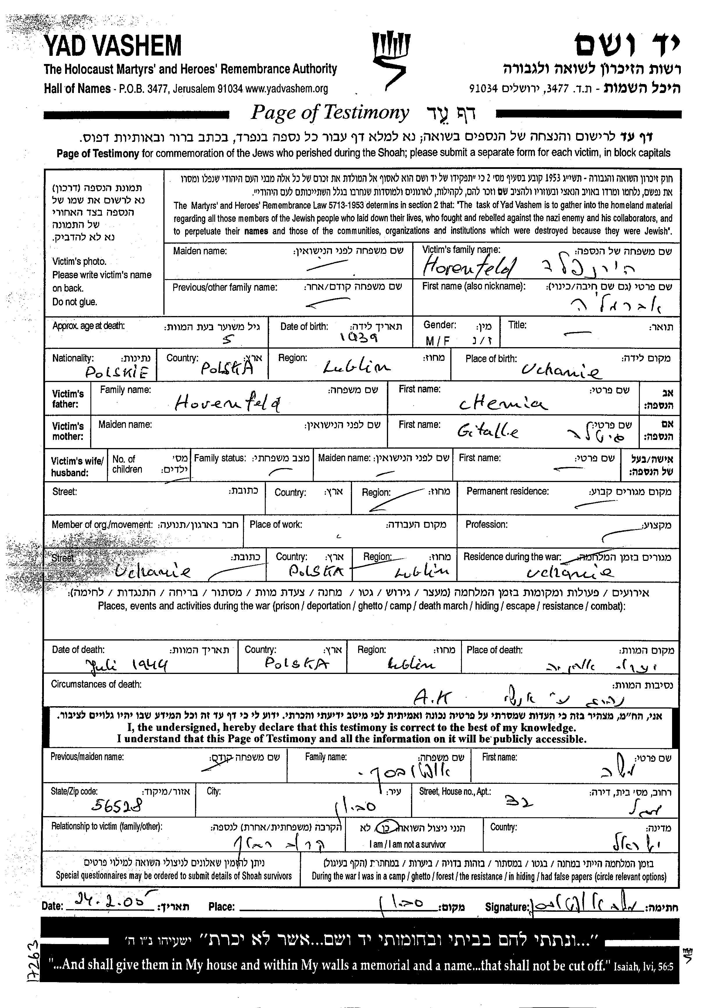 יד ושם - המפעל להנצחת השמות בדפי עד