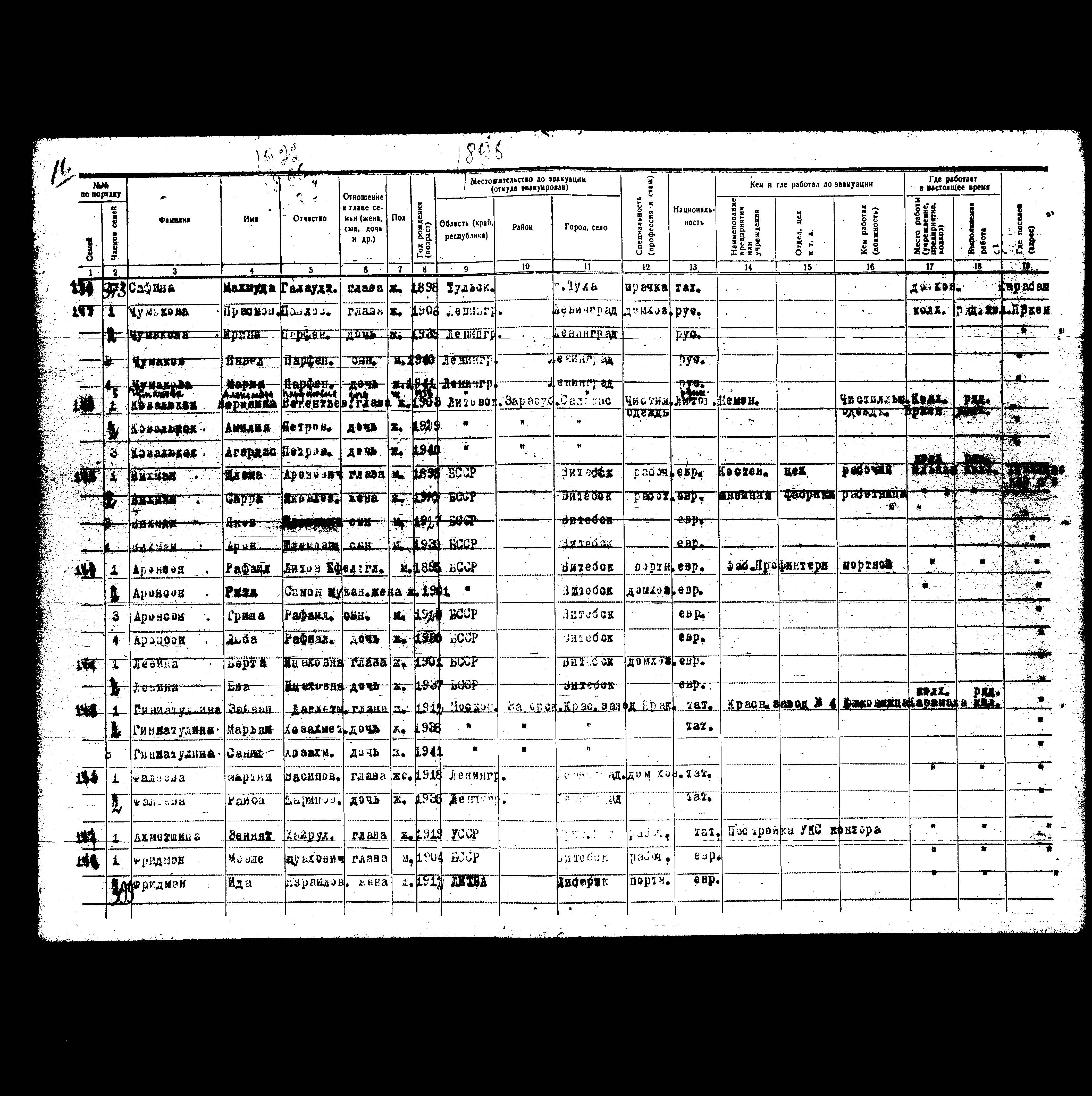 רשימת תושבים שפונו לנפת Novaya Pismyanka, שהוכנה ב- 26/03/1942
