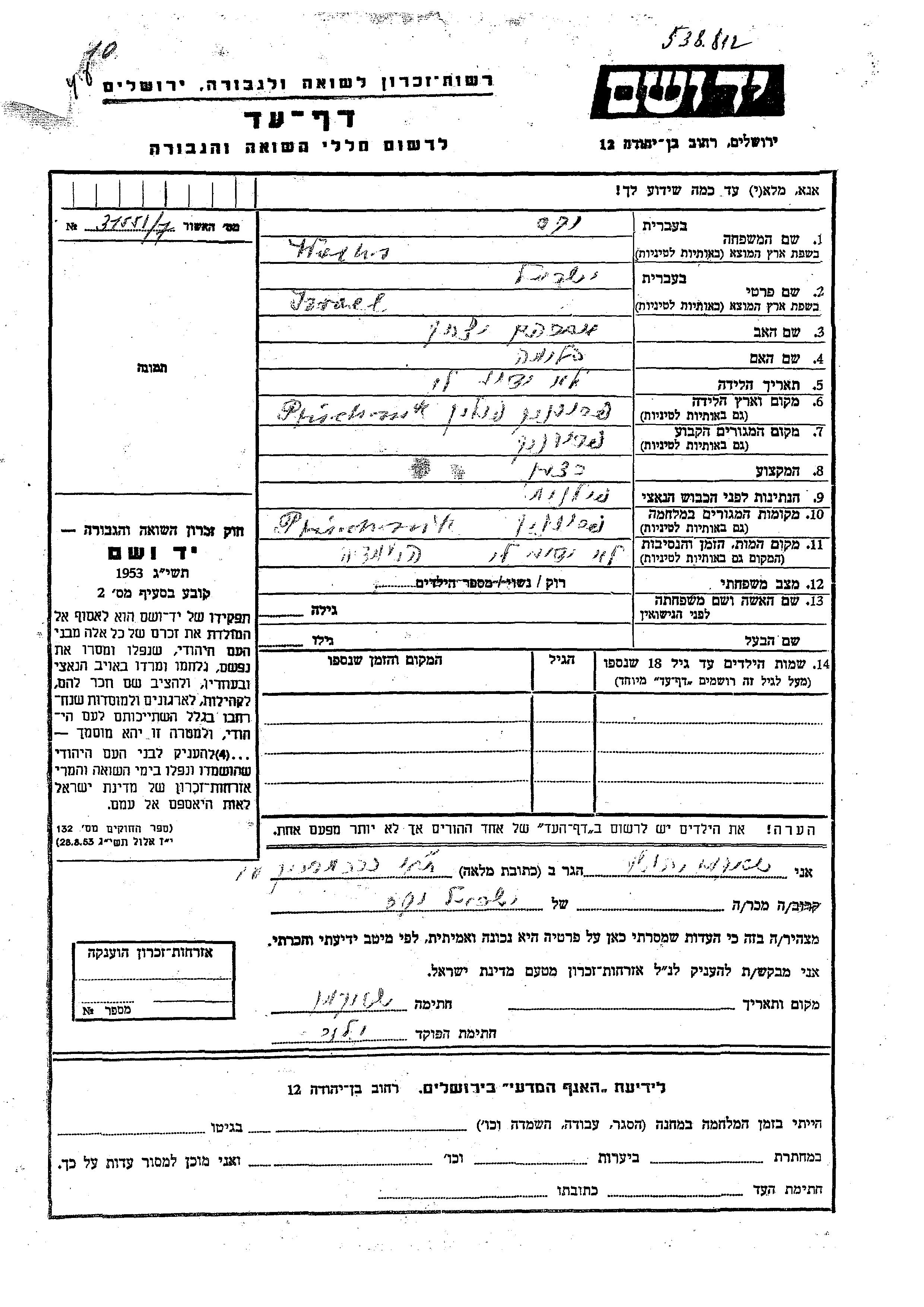 יד ושם - המפעל להנצחת השמות בדפי עד