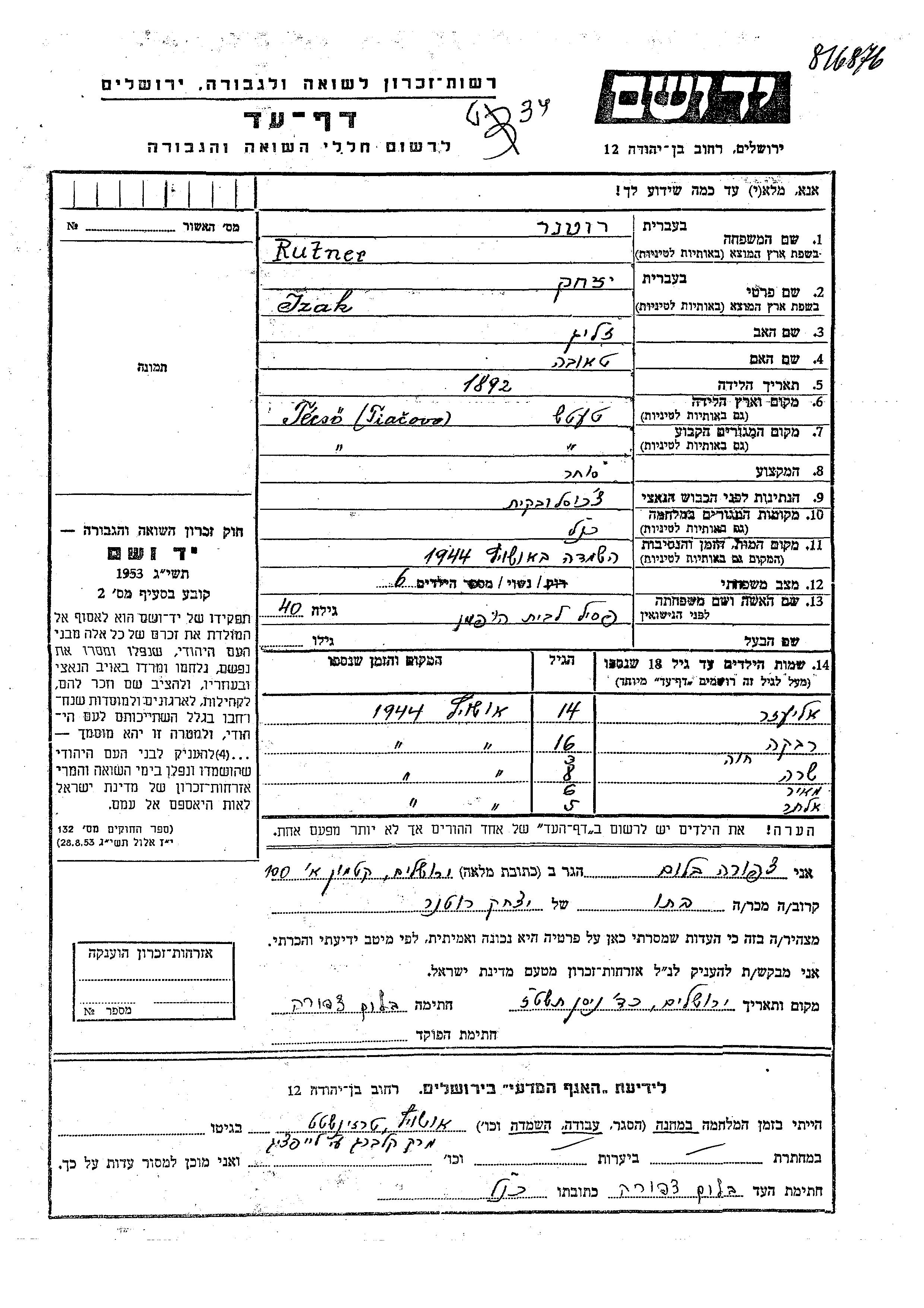יד ושם - המפעל להנצחת השמות בדפי עד