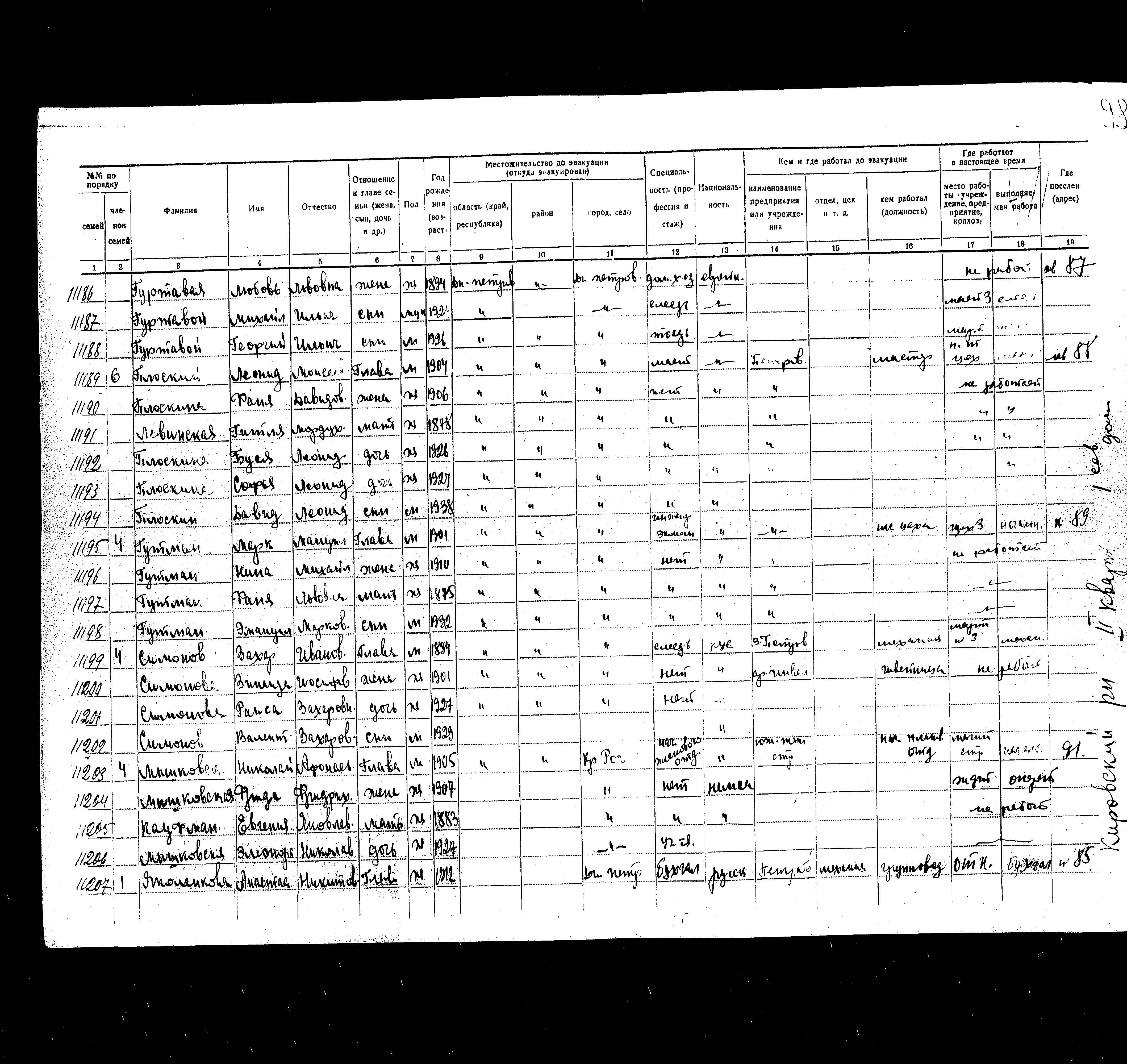 רשימת תושבים שפונו ל- Magnitogorsk, שהוכנה בשנת 1942