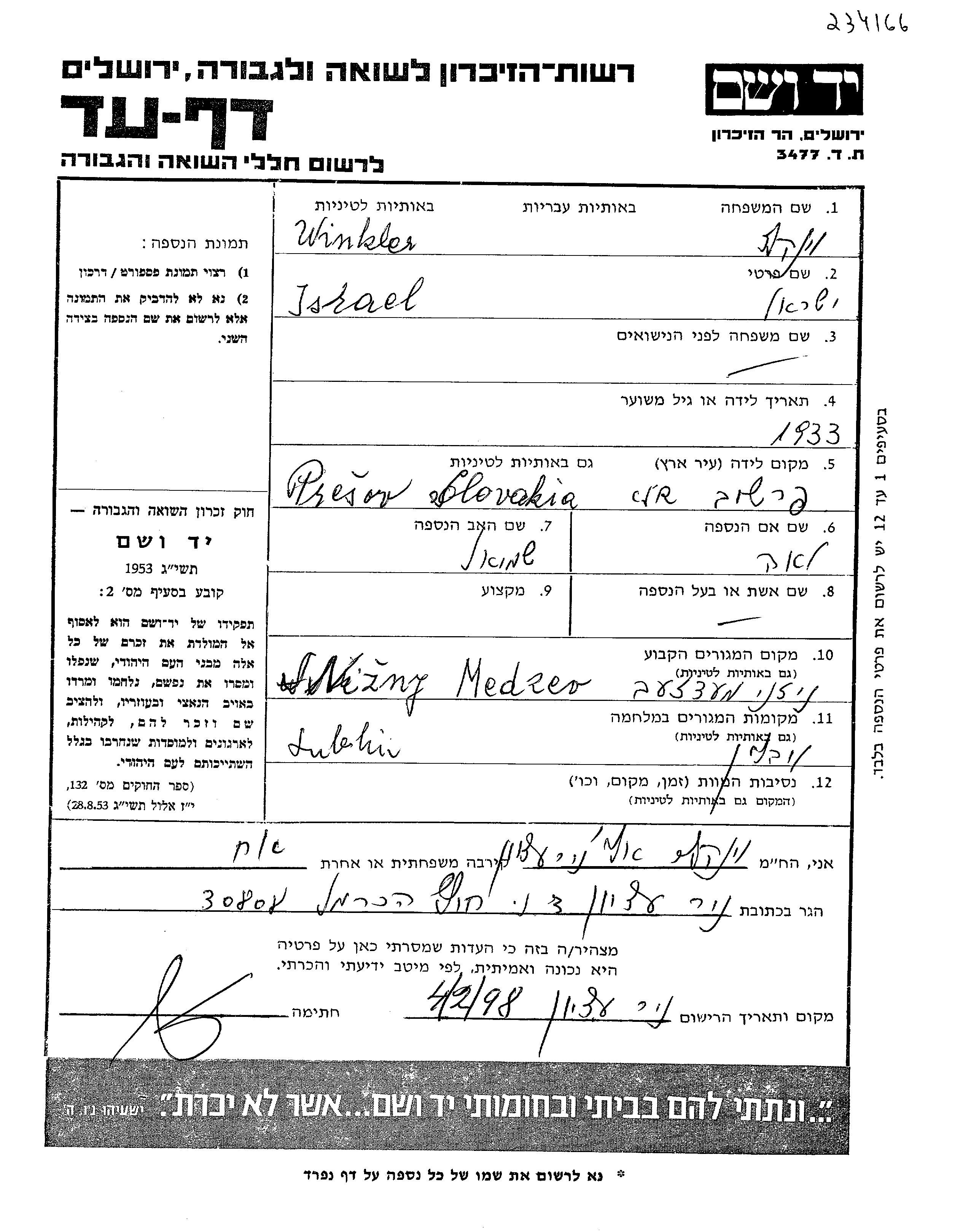 Winkler ישראל Nizny Medzev, צ'כוסלובקיה דף-עד