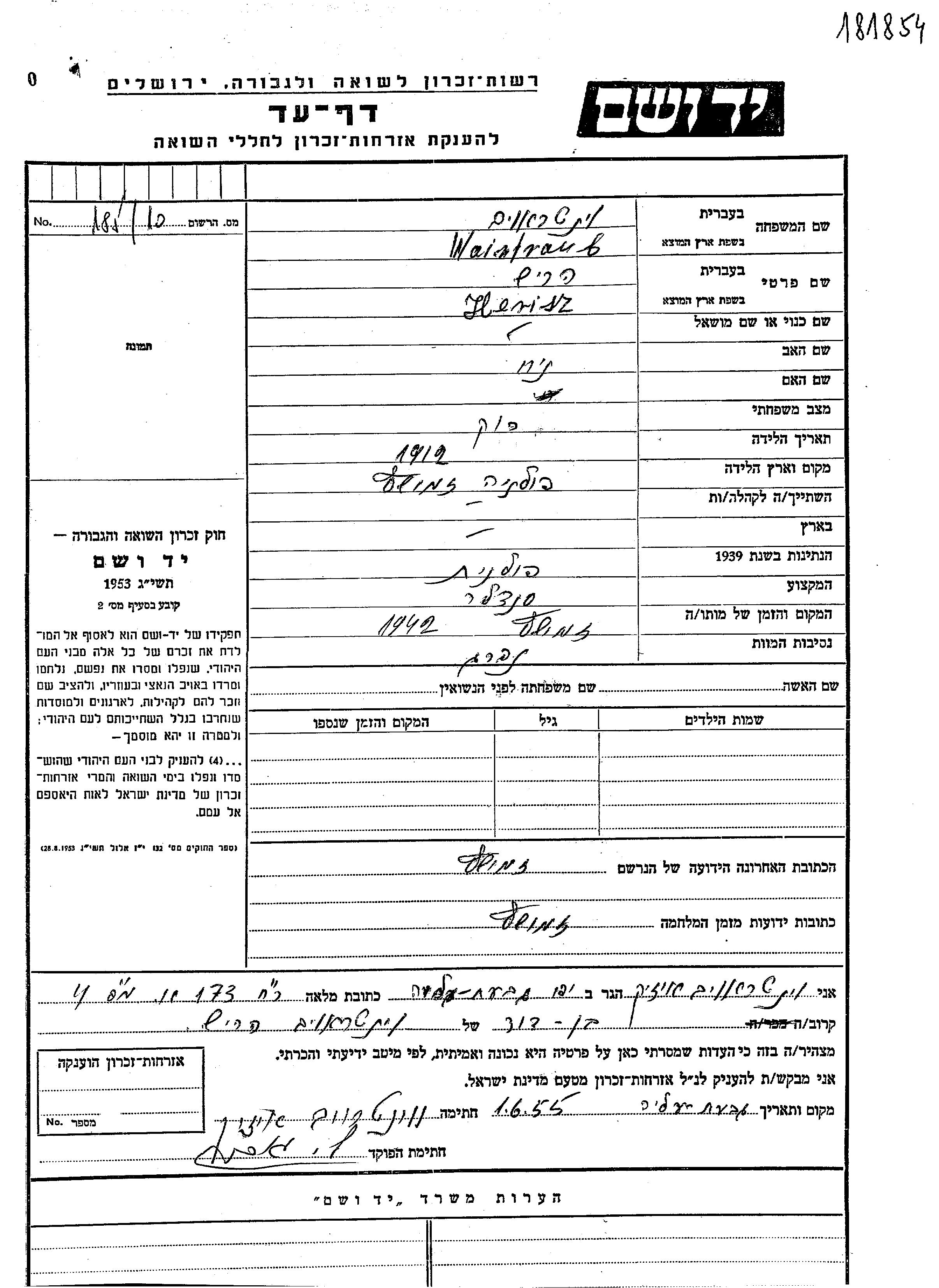 יד ושם - המפעל להנצחת השמות בדפי עד
