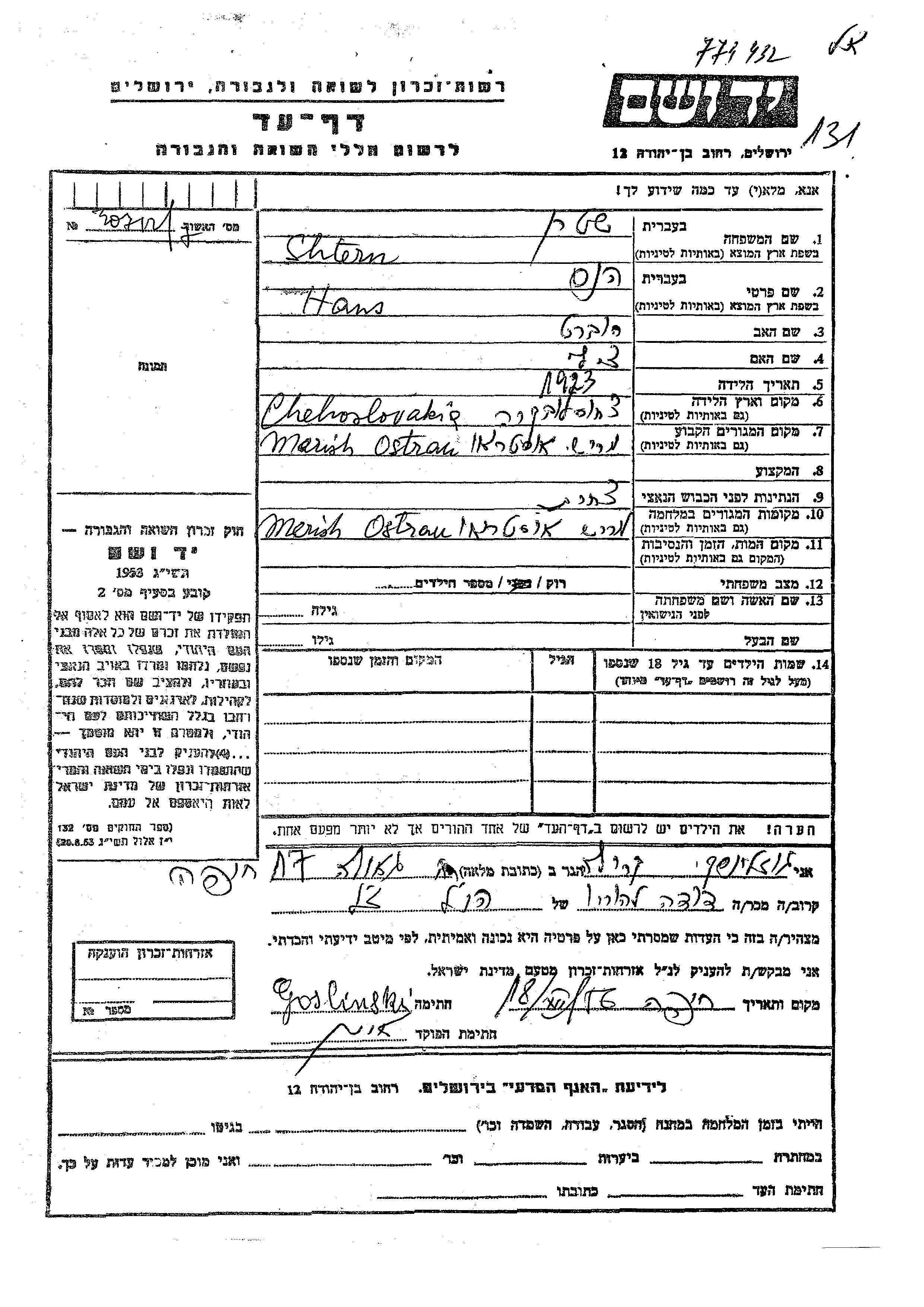 שטרן הנס 1923 Ostrava, צ'כוסלובקיה דף-עד
