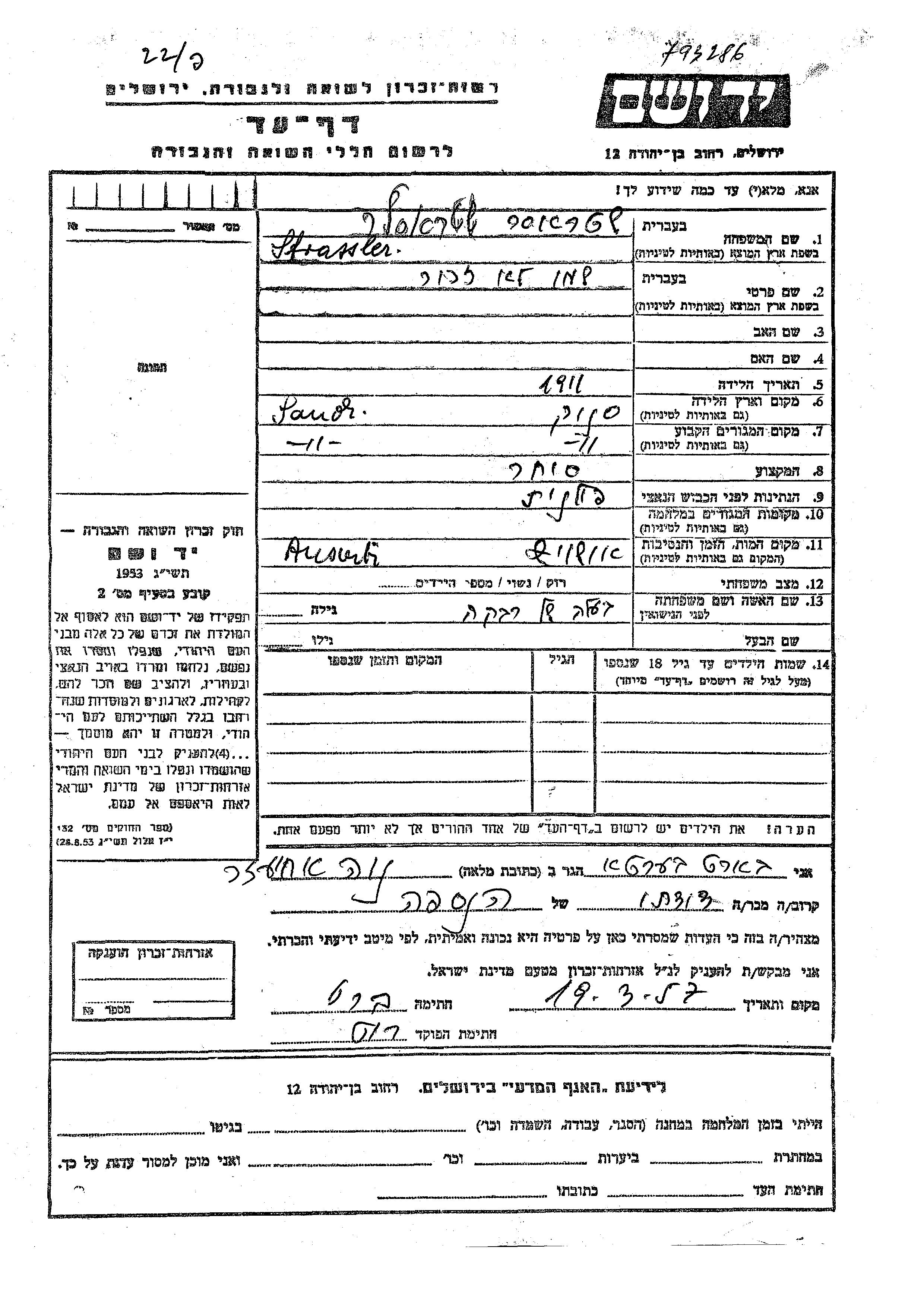 עיר/כפר, גטו/מחנה או אתר רצח או מחוז/אזור או מדינה. שם מקום ניתן לחפש רק בא-ב לטיני.