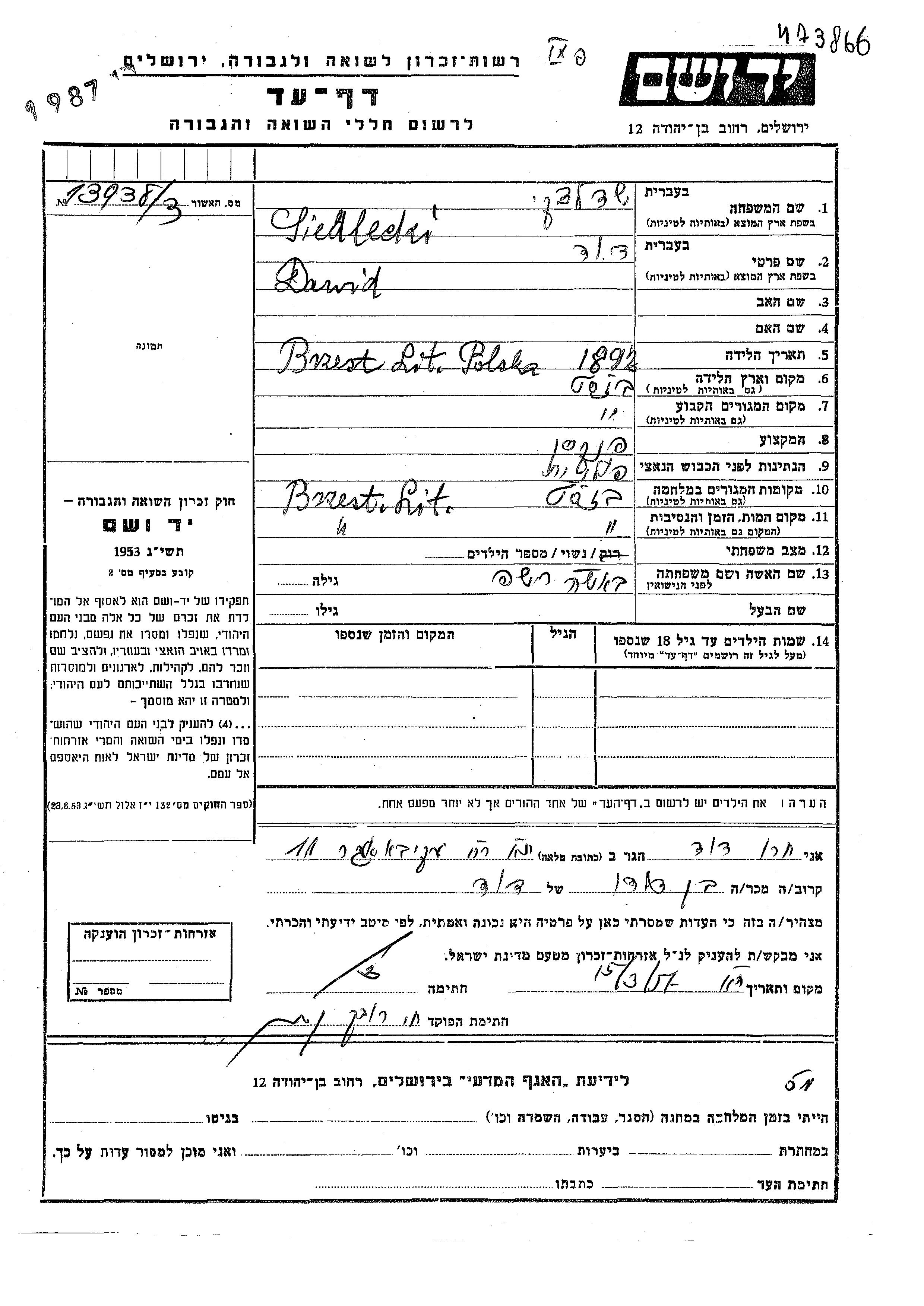 Siedlecki Dawid 1892 Brest Litowsk, פולין דף-עד