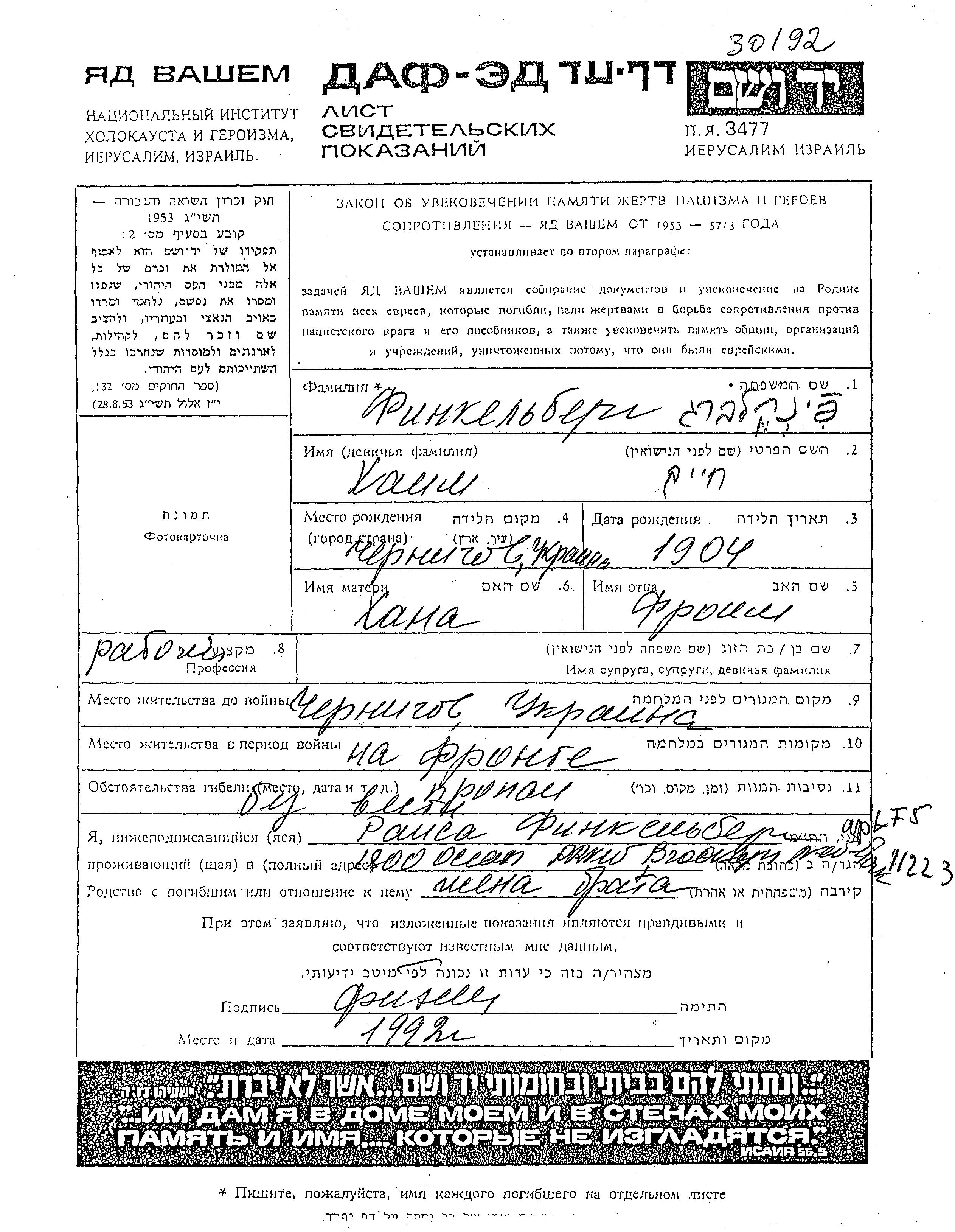 חיפוש שם מוסר דף העד. חיפוש לפי כל שם פרטי, כולל כינוי או שם חיבה