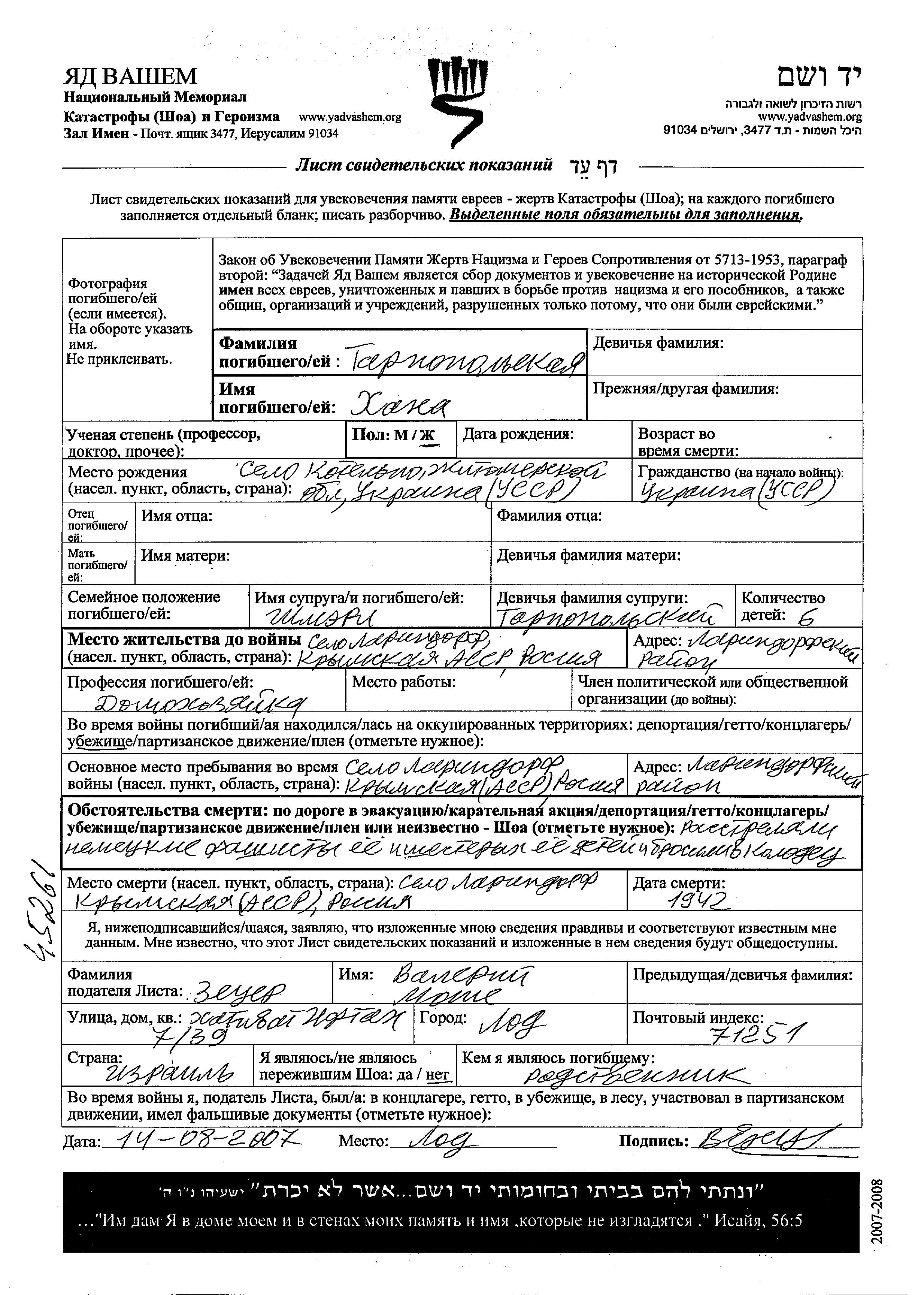 Tarnopolskaya | חנה | Larindorf, רוסיה (ברה"מ) | דף-עד (מקוון) |