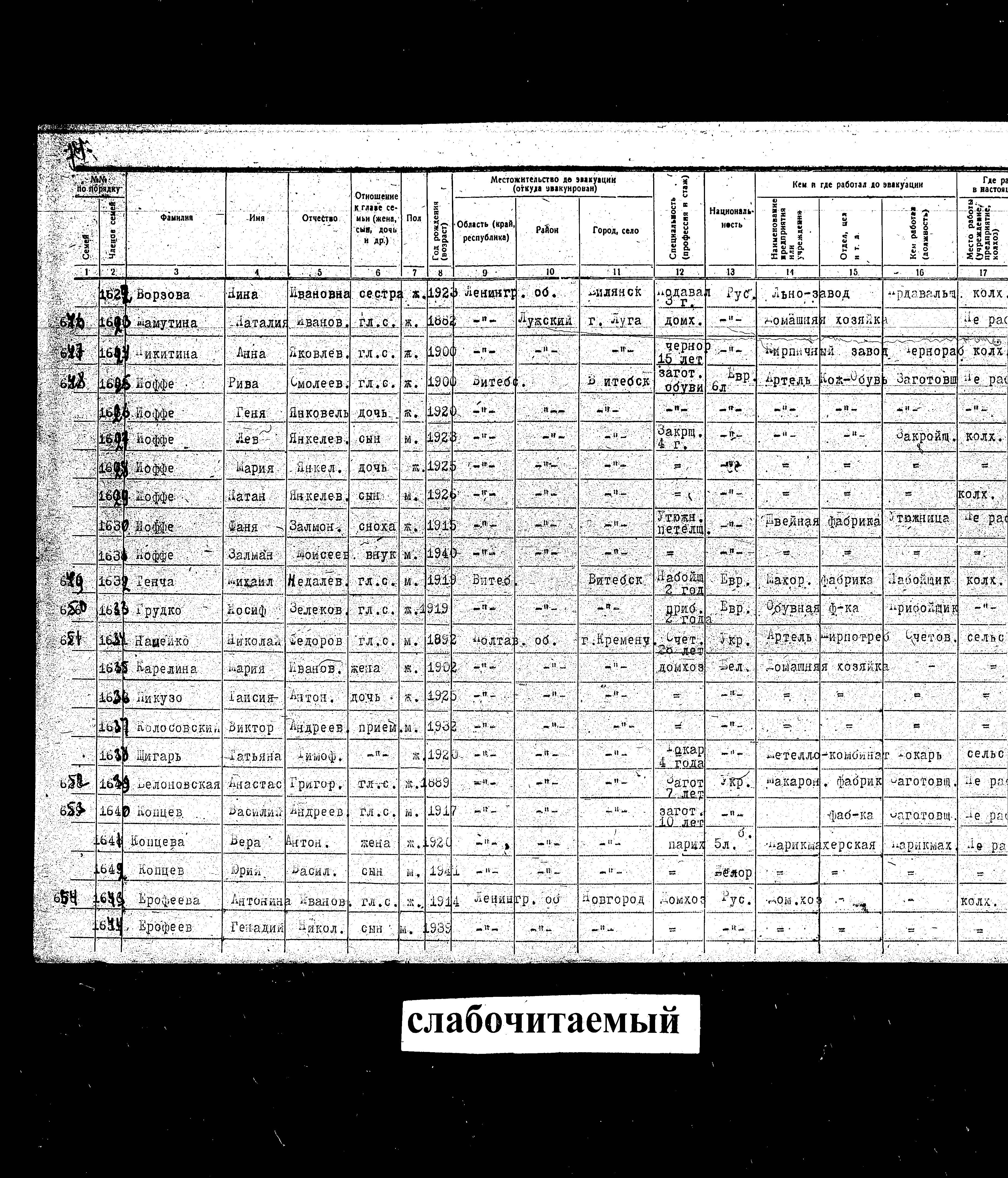 Lev Ioffe נולד בשנת 1923. הוא היה גזרן. לפני מלחמת העולם השניה התגורר בVitebsk שבביאלורוסיה (ברה"מ).