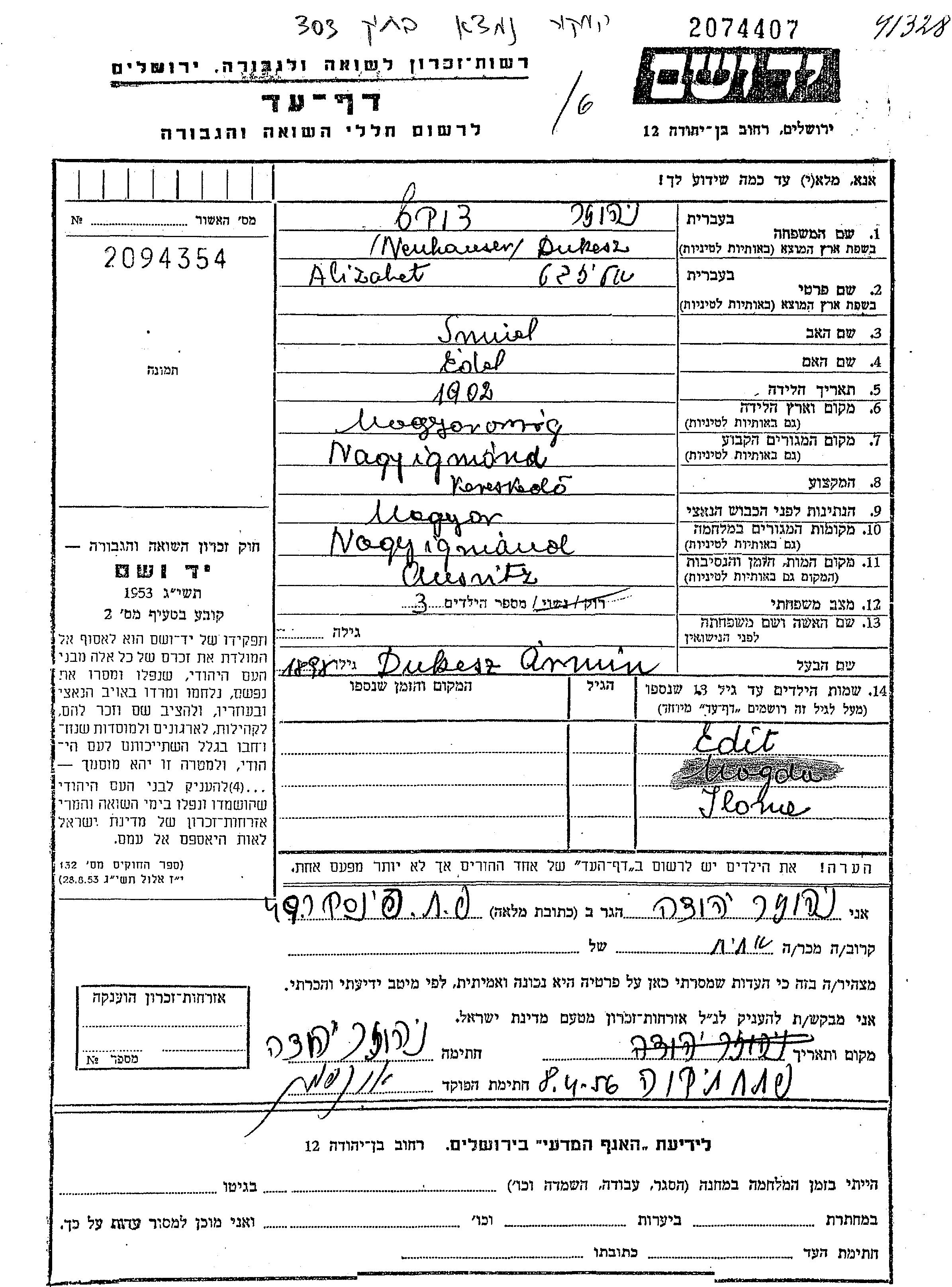 חיפוש שם מוסר דף העד. חיפוש לפי כל שם פרטי, כולל כינוי או שם חיבה