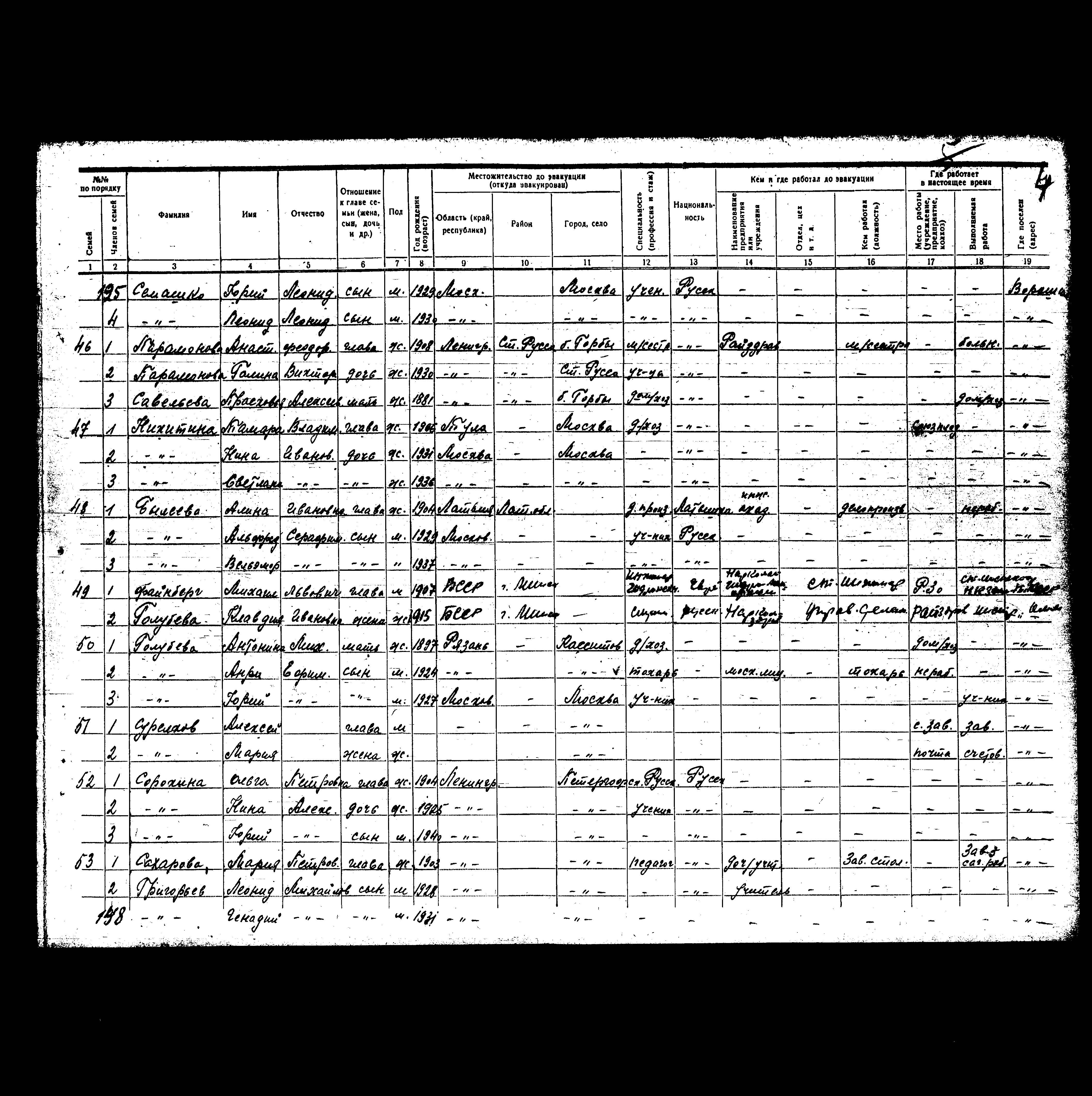 רשימת תושבים שפונו לנפת Laishevo, שהוכנה בשנת 1942