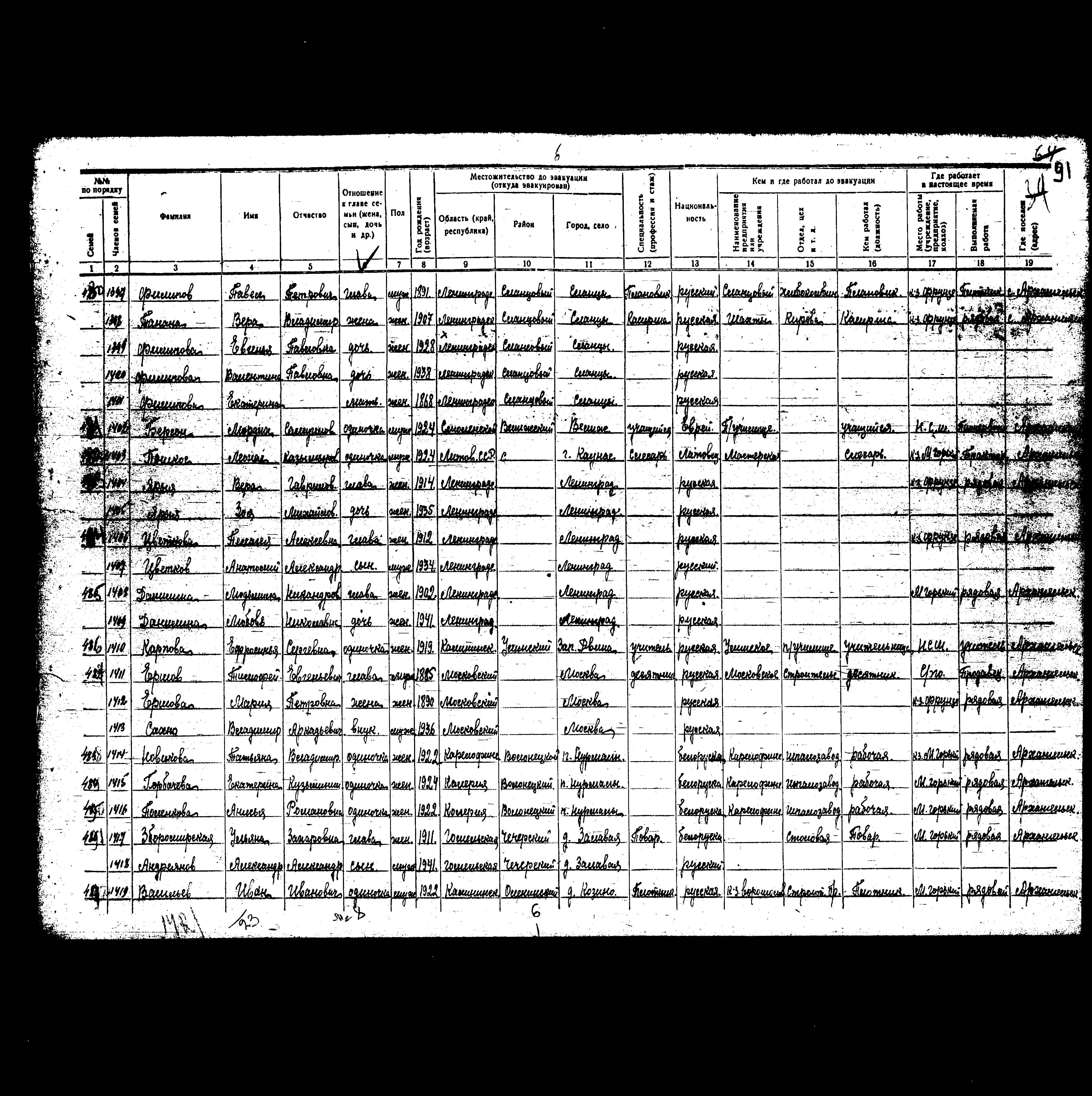 רשימת תושבים שפונו לנפת Novo Sheshminsk, שהוכנה בשנת 1942