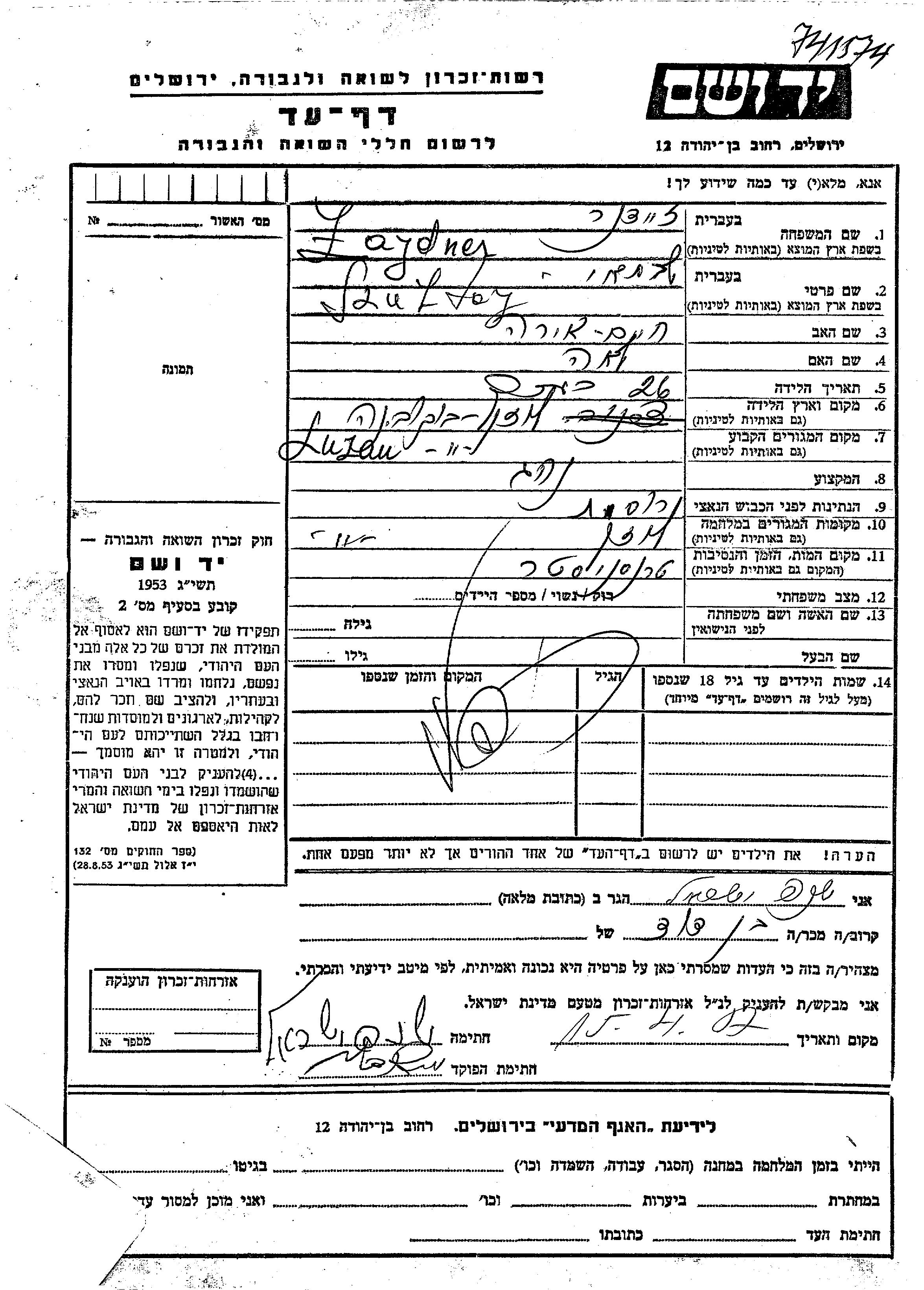 יד ושם - המפעל להנצחת השמות בדפי עד