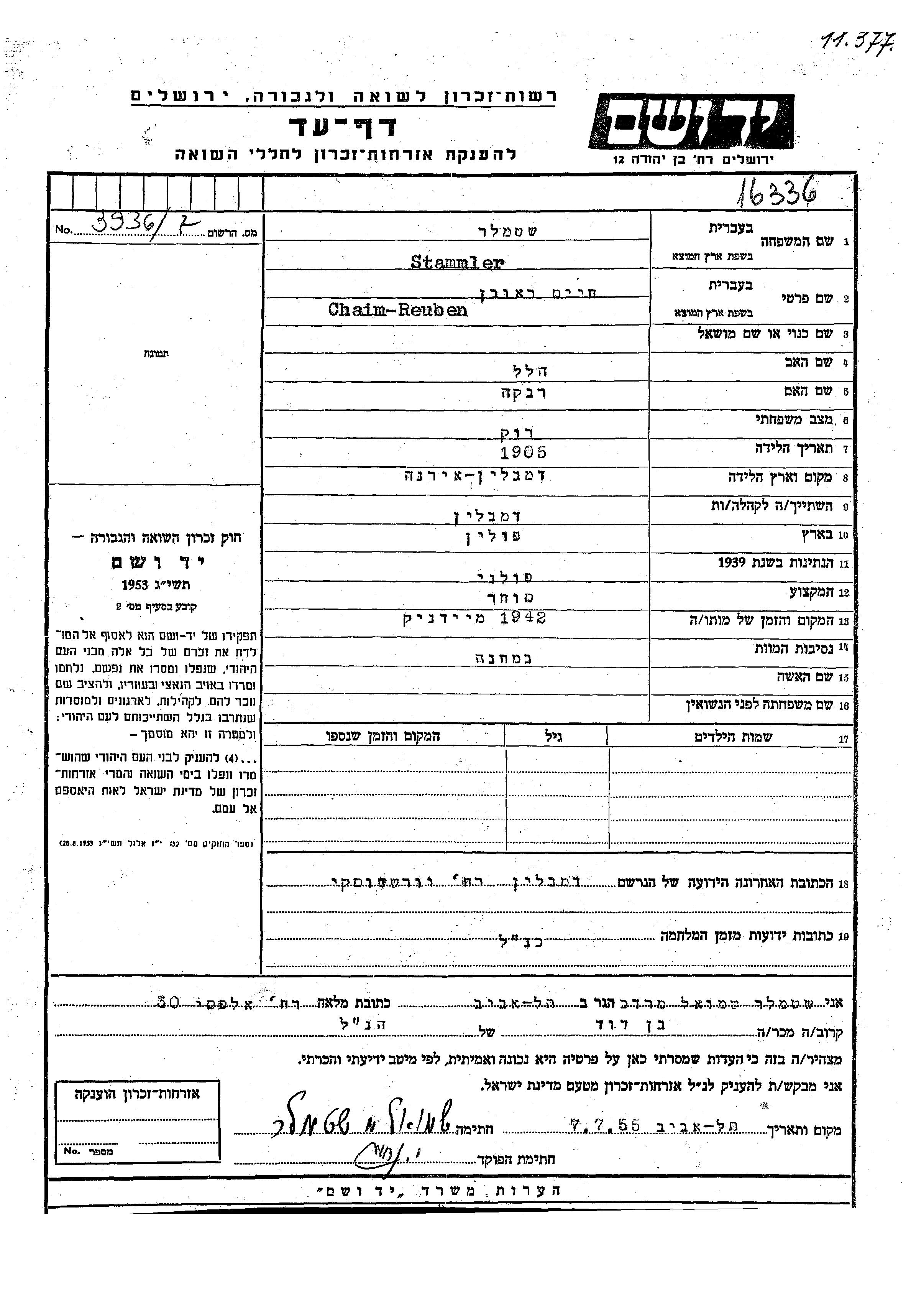 חיפוש שם מוסר דף העד. חיפוש לפי כל שם פרטי, כולל כינוי או שם חיבה