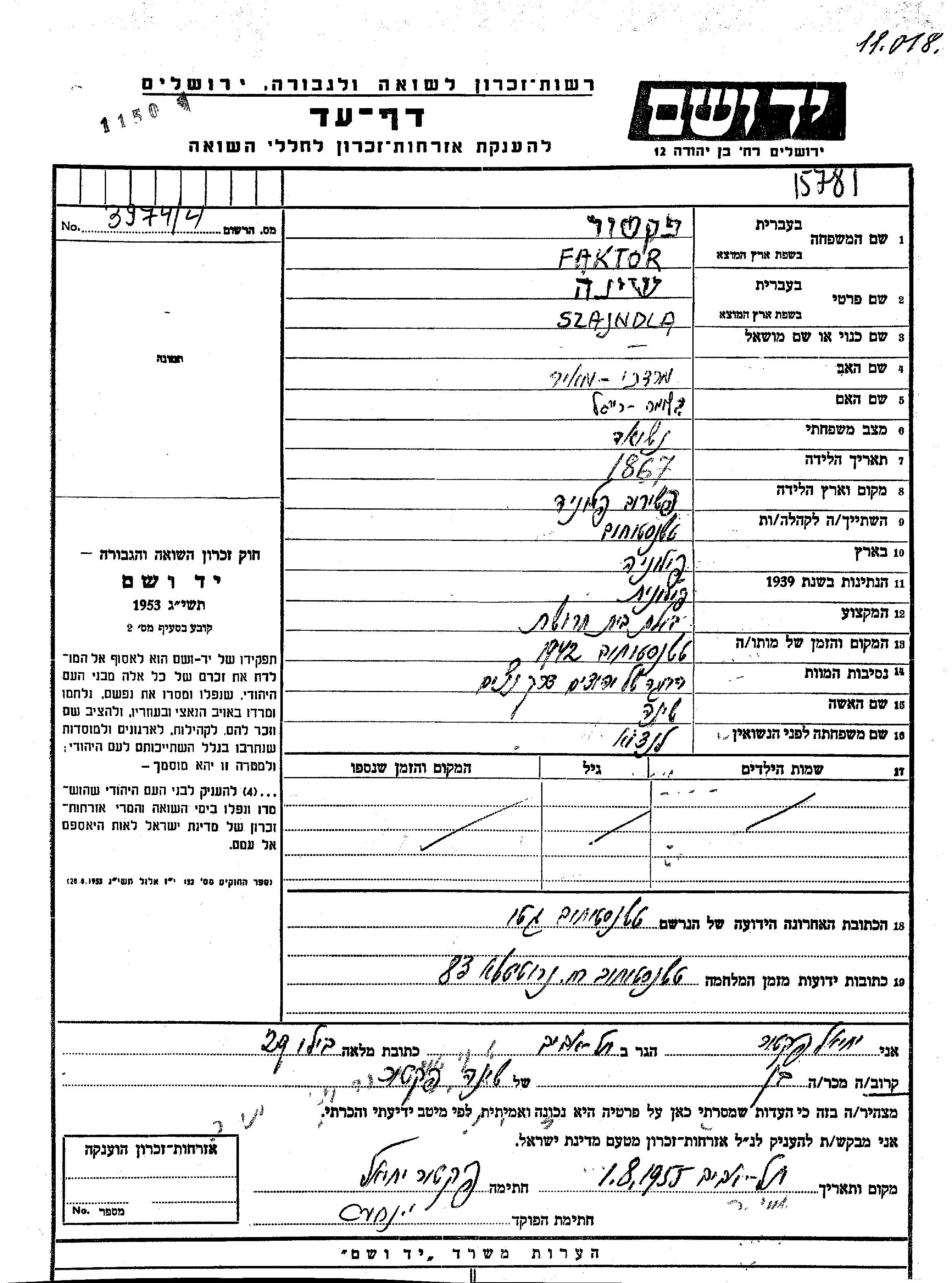 פקטור Szajndla 1867 Czestochowa, פולין דף-עד