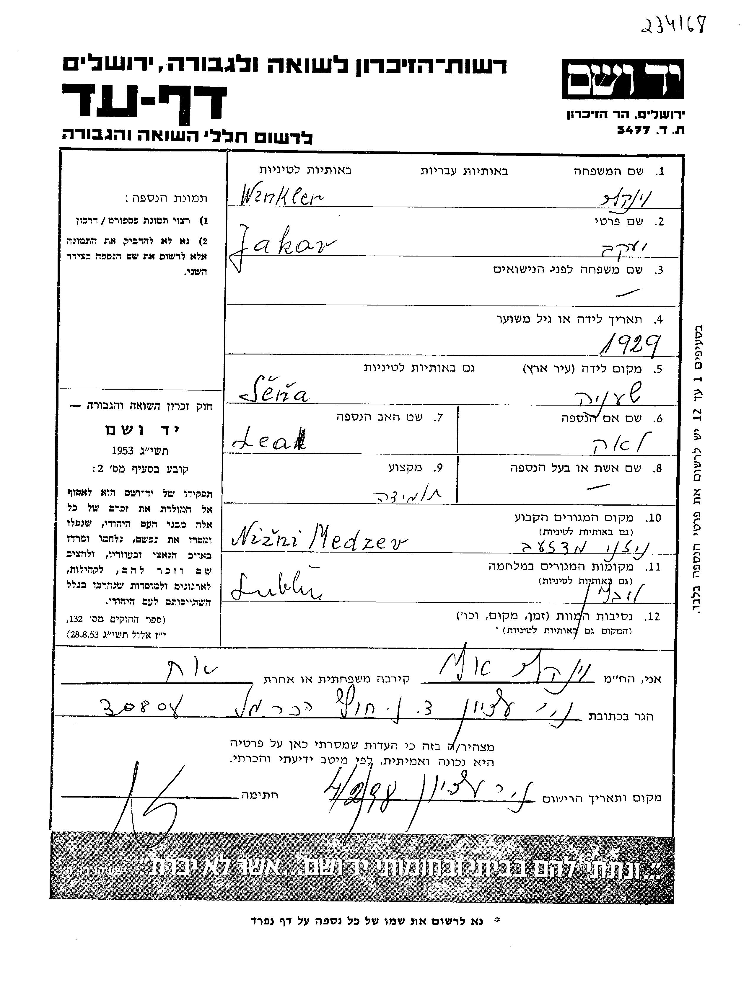 Winkler יעקב Nizny Medzev, צ'כוסלובקיה דף-עד