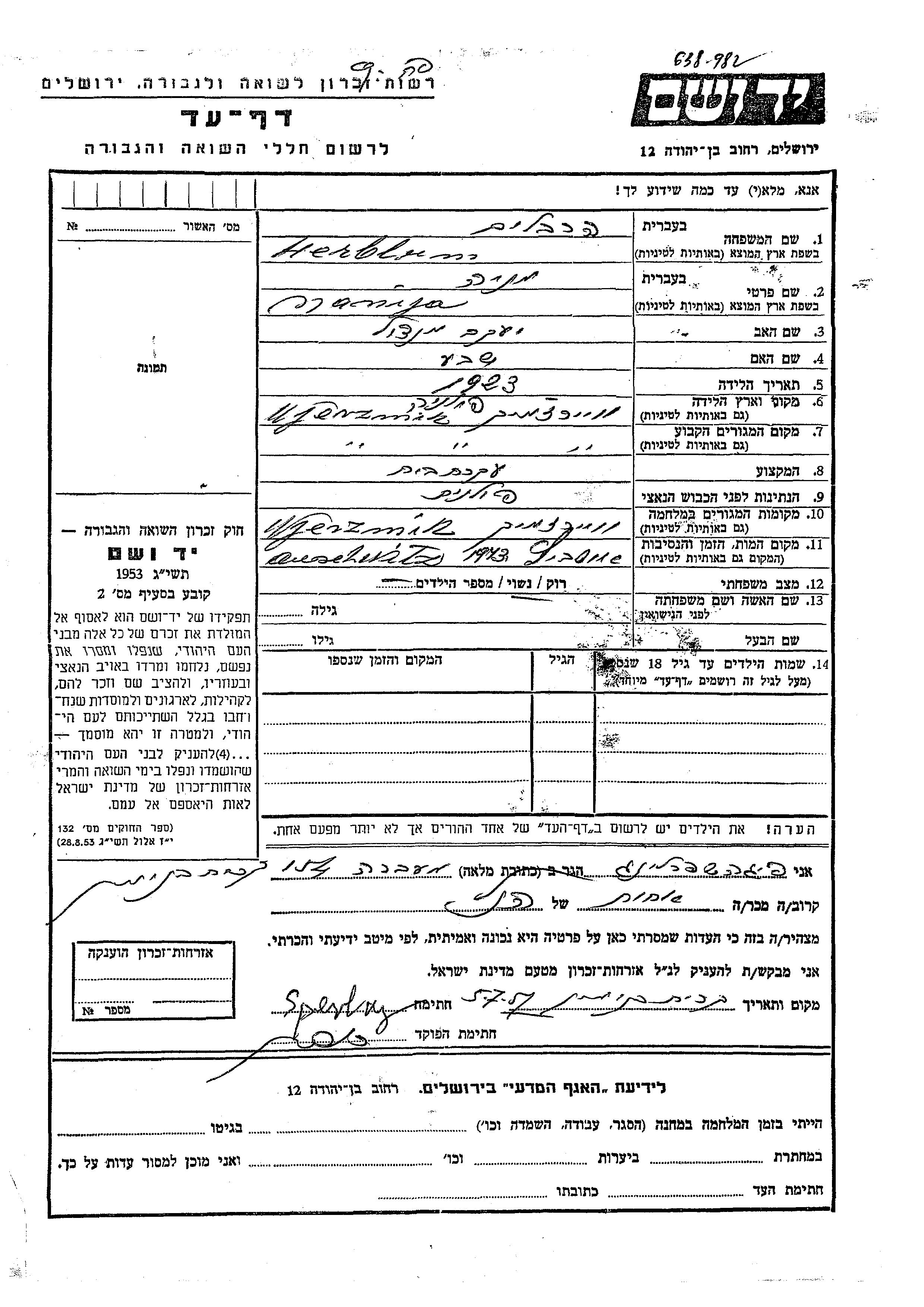 יד ושם - המפעל להנצחת השמות בדפי עד