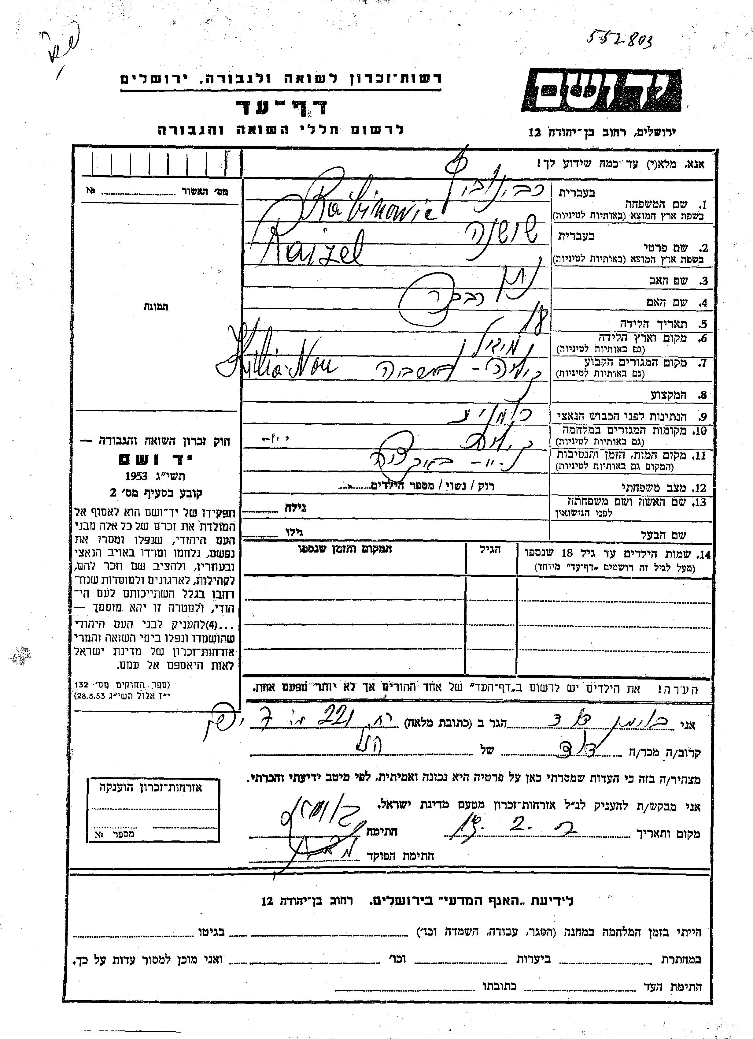 חיפוש שם מוסר דף העד. חיפוש לפי כל שם פרטי, כולל כינוי או שם חיבה