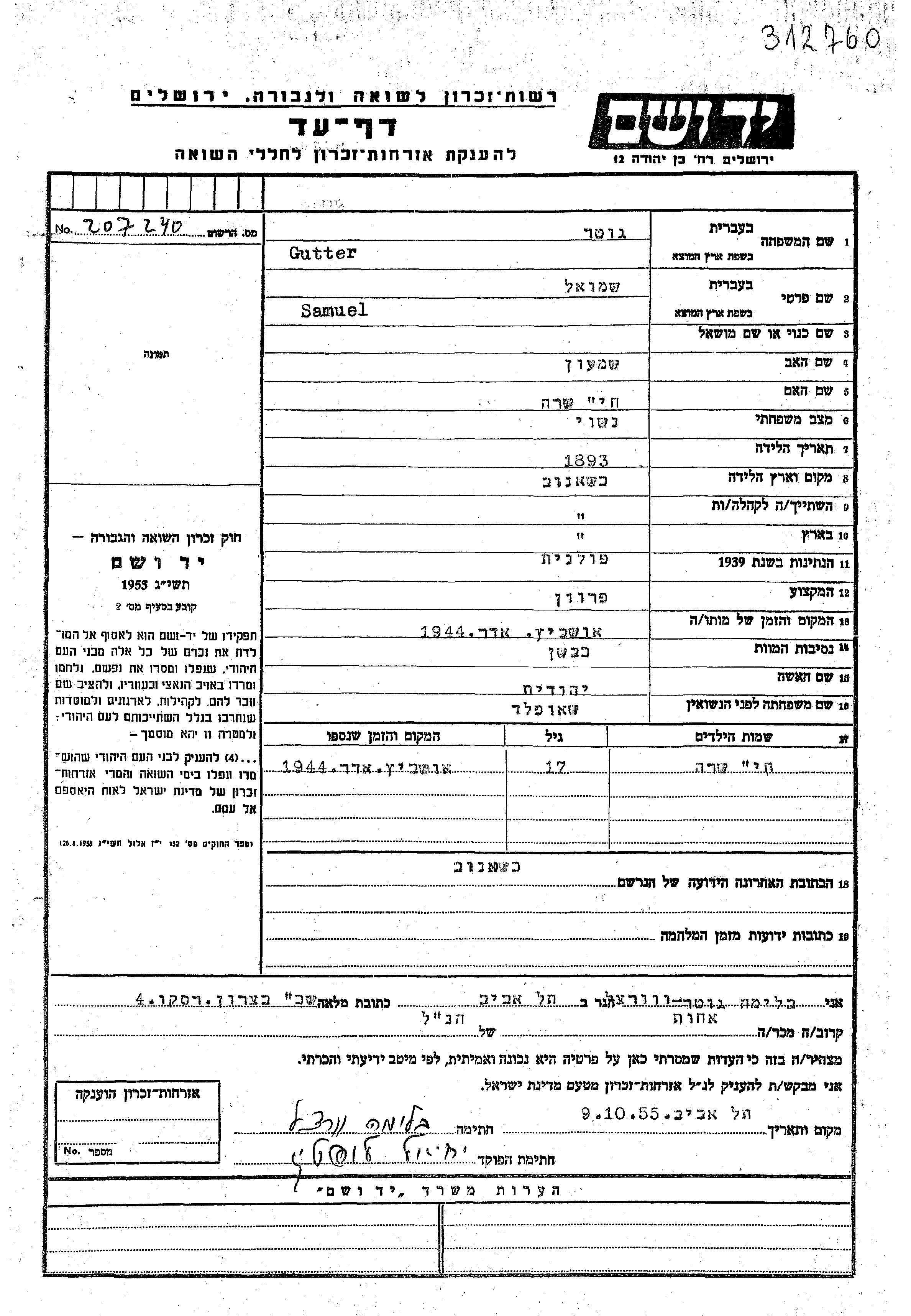 עיר/כפר, גטו/מחנה או אתר רצח או מחוז/אזור או מדינה. שם מקום ניתן לחפש רק בא-ב לטיני.
